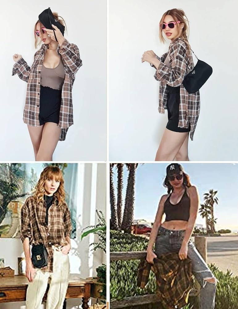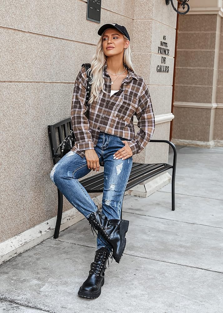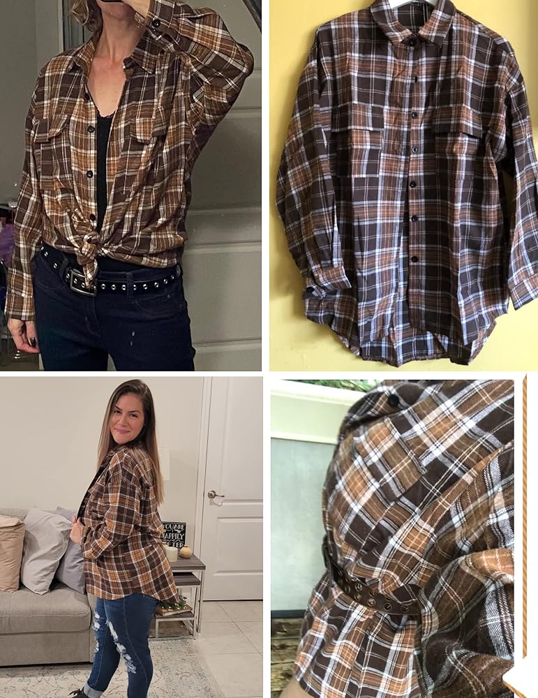 نصائح: قميص فلانيل للنساء / قميص جاموس منقوش / قميص كبير الحجم بأزرار سفلية / سترة نسائية / قميص فلانيل خفيف الوزن / قميص أزياء الخريف الغربي للنساء