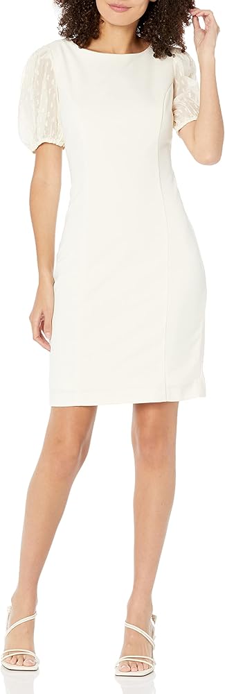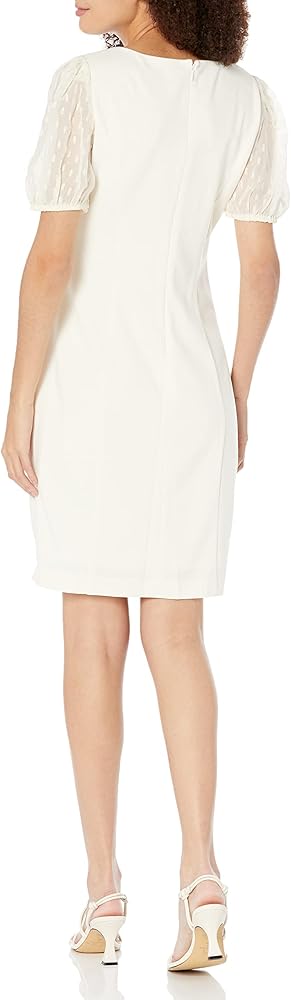 فساتين DKNY النسائية ذات الوسائط المتعددة هي كم قصير ومكشكش جانبي