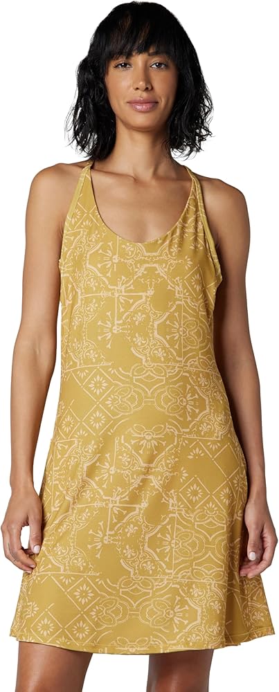 فستان prAna OPAL مصنوع من نسيج جيرسي مطاطي من مزيج البوليستر المُعاد تدويره. تشتمل ميزات التصميم على مطبوعات حرارية، وظهر متسابق برقبة على شكل حرف V، ورف حمالة صدر داخلي مع مطاط فخم، وتفاصيل قميص على طول درزات الصدر، وملاءمة قياسية. متوفر في المطبوعات والألوان الصلبة.