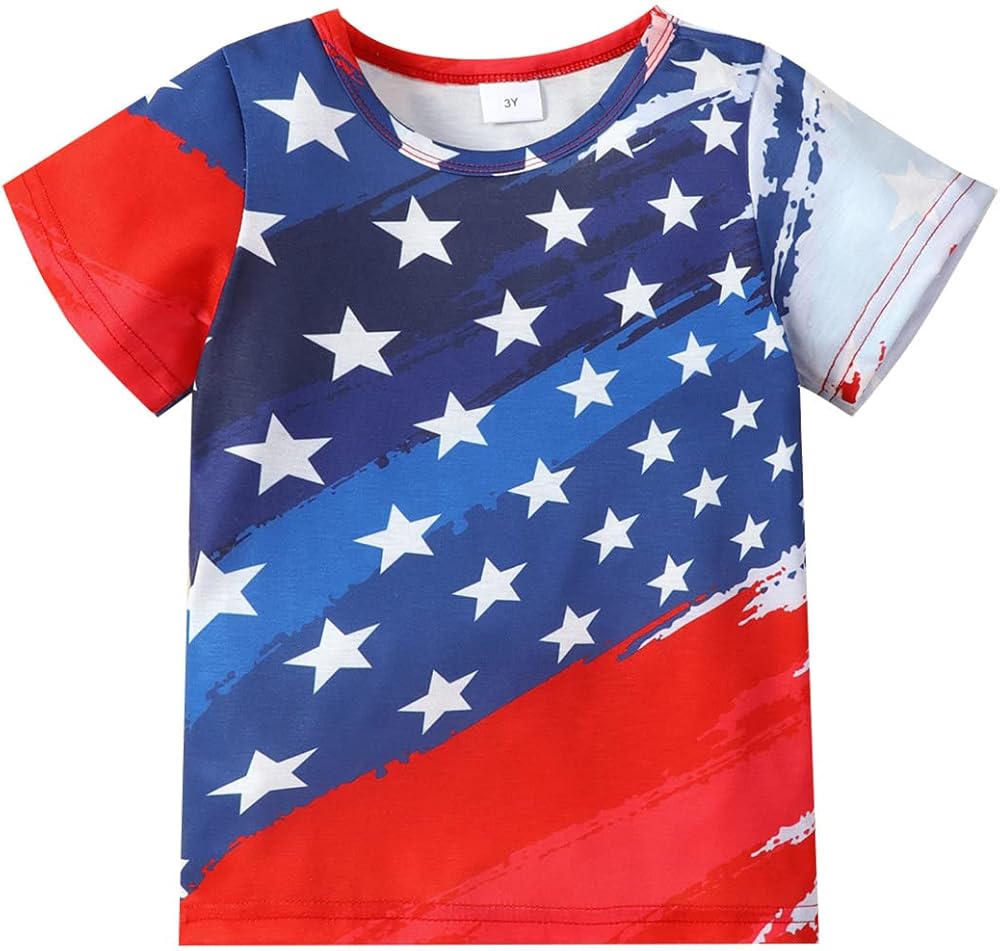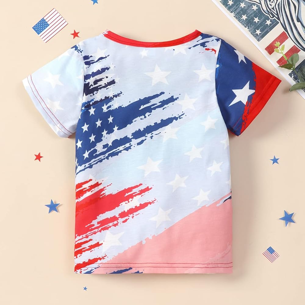 تي شيرت للأولاد والبنات بعلم أمريكي بأكمام قصيرة من القطن 4th من يوليو تي شيرت للأطفال الصغار ملابس وطنية أمريكية 3t-10t