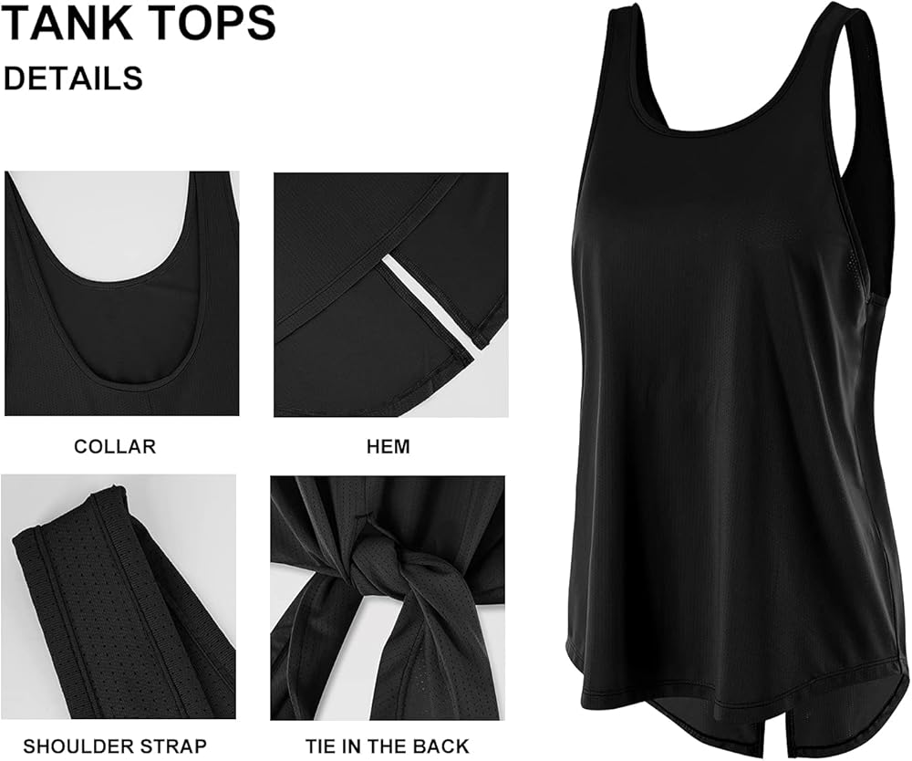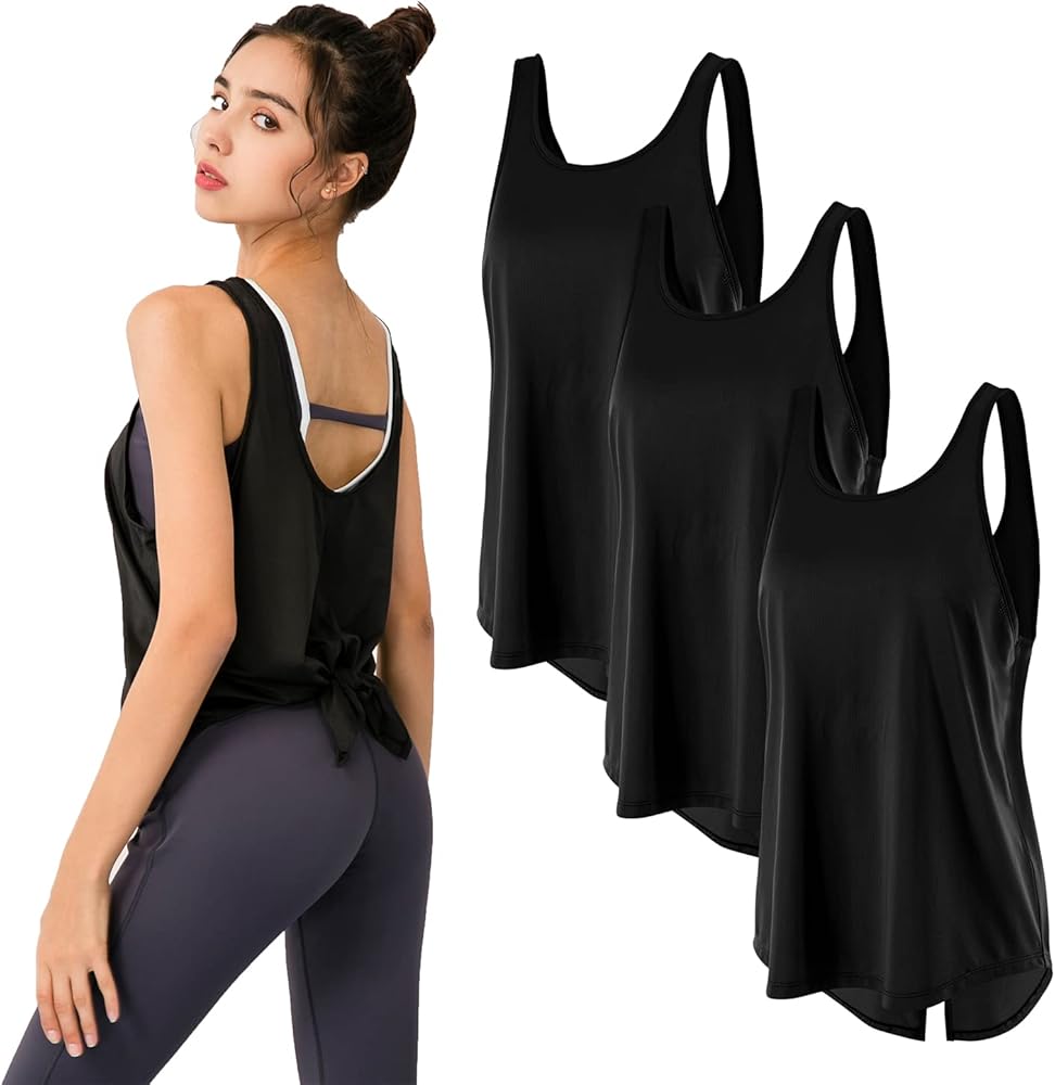 قمصان تانك توب للنساء من LANBAOSI مكونة من 3 قمصان مفتوحة الظهر لليوجا الرياضية والجري