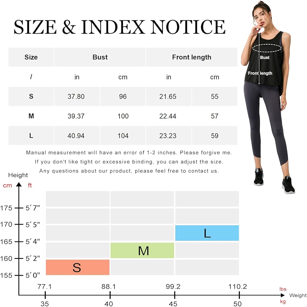 • ❤وصف المقاس: يختلف مقاسنا عن مقاس أمازون. يرجى الرجوع إلى جدول المقاسات الموضح في الصورة. قمصان LANBAOSI الرياضية بدون أكمام للنساء مصنوعة من أقمشة فائقة التمدد من M إلى XL ويوجد دائمًا واحدة تناسبك