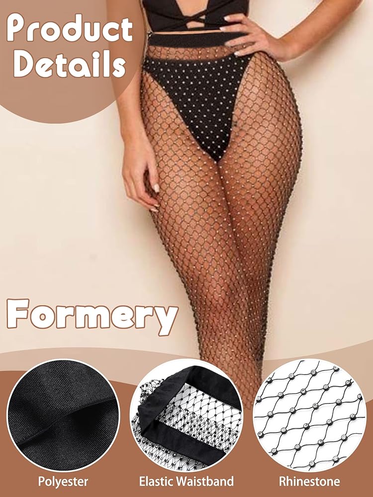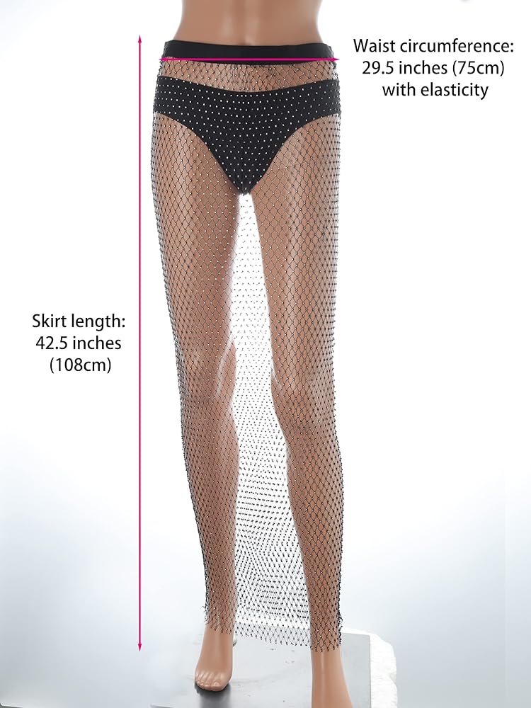 غطاء شبكي مرن أسود يمكن رؤيته من خلاله، مثير، مع أحجار الراين اللامعة، مثالي للرقص، والشاطئ، والارتداء اليومي، وملابس الحفلات، وملابس النادي، والسهرات، وملابس الاحتفالات الموسيقية، والحفلات التنكرية، والهالوين.