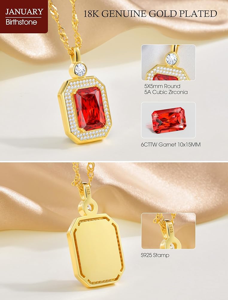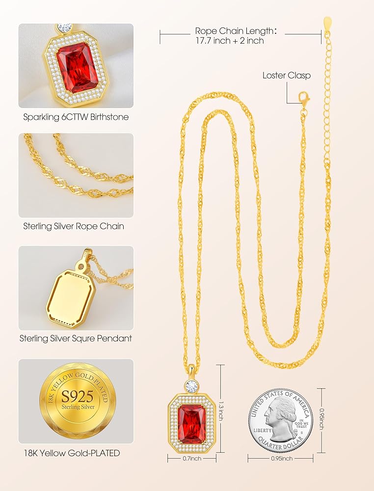🌟 صناعة يدوية فاخرة - كل من القلادة والسلسلة المربعة مصنوعة من الفضة الإسترلينية عيار 925 المطلية بالذهب الأصفر عيار 18 قيراط عالية الجودة. ليست مجوهرات حجر الميلاد هذه مضادة للحساسية وصديقة للبشرة فحسب، ولكنها تتمتع أيضًا بمقاومة لا مثيل لها للتشويه. قياس القلادة: 1.3"ⅹ0.7" | طول سلسلة الحبل: 17.7 بوصة+2 بوصة | حجم جوهرة الميلاد: 15x10 مللي متر (6 CTTW).