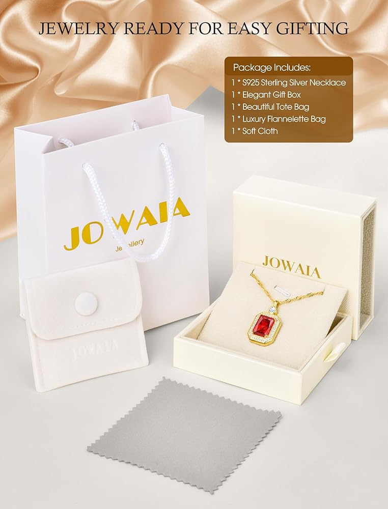هدايا قلادة جوهرة الميلاد للنساء، قلادات من الفضة الإسترلينية مجوهرات ذهبية للنساء الفتيات، مجوهرات جوهرة مربعة متلألئة مع سلسلة حبل، هدايا عيد الميلاد لعيد الميلاد للأم والزوجة والصديقة والجدة - مطلية بالذهب الحقيقي عيار 18 قيراط