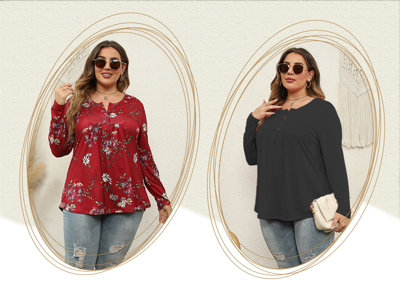ركز على البلوزات النسائية ذات المقاسات الكبيرة مع جدول المقاسات الأمريكي القياسي، XL (14-16 Plus)، 2X (18-20 Plus)، 3X (22-24 Plus)، 4X (26-28 Plus)، يرجى اختيار مقاسك المعتاد