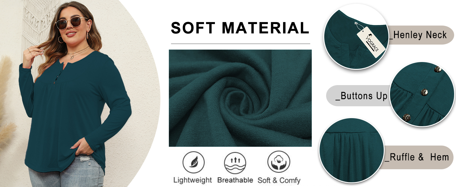 قمصان نسائية بمقاس كبير بنسيج ناعم ومريح للمسة أنثوية، قابلة للتمدد دون أن تكون مترهلة، خفيفة الوزن ولا تلتصق