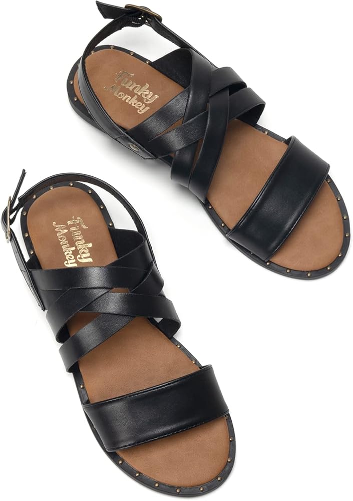 صنادل مسطحة خفيفة الوزن، تصميم بسيط بحزام متقاطع متعدد الاستخدامات، مناسب للارتداء طوال اليوم.
