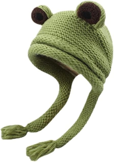 HS Kawaii القبعات قبعات كروشيه للنساء الضفدع قبعة خمر بيني النساء الجرونج اكسسوارات مترهل بيني للنساء الشتاء