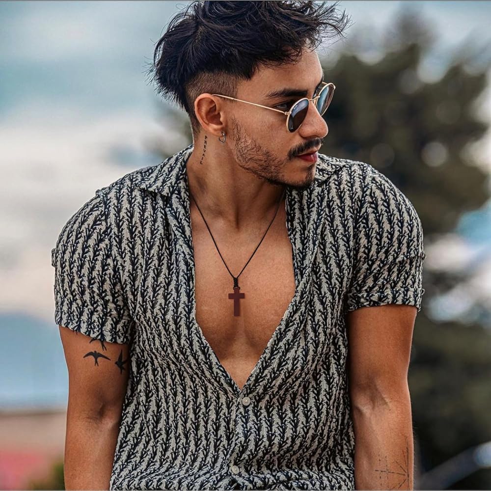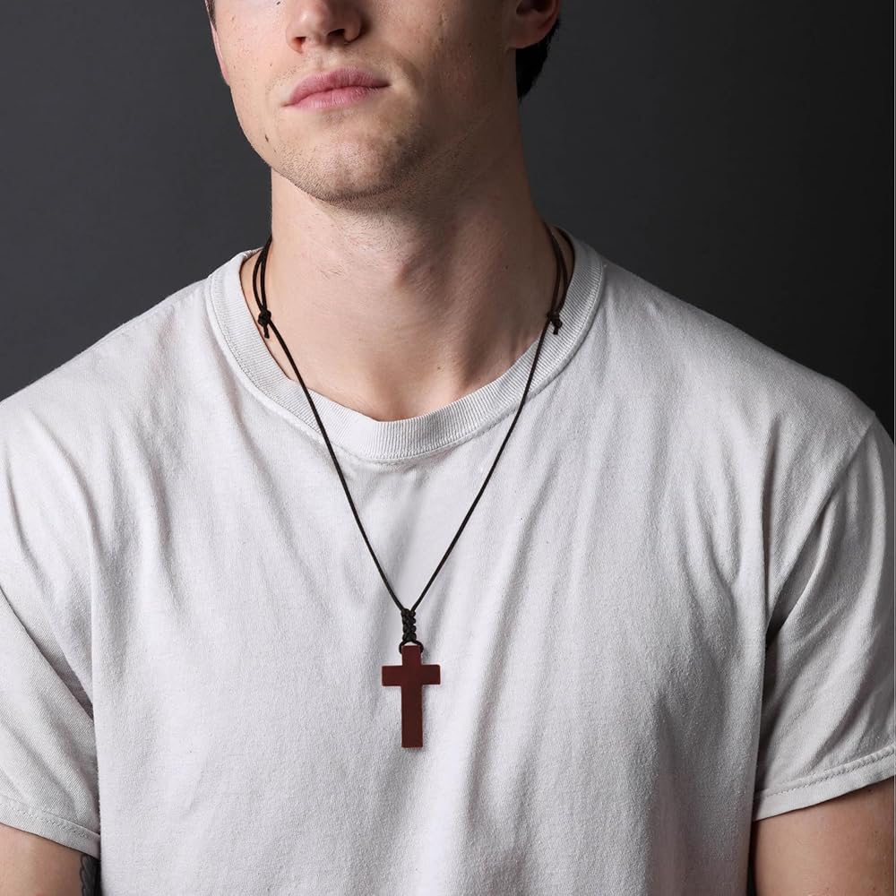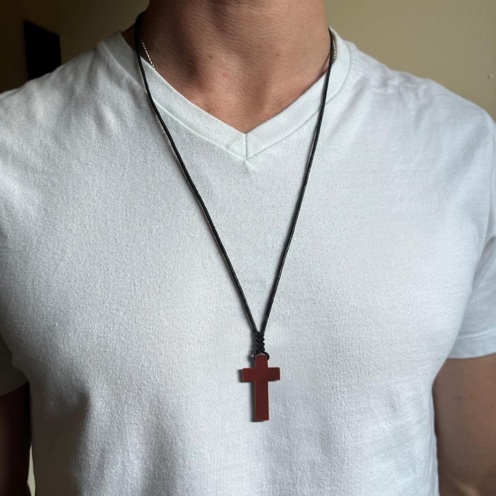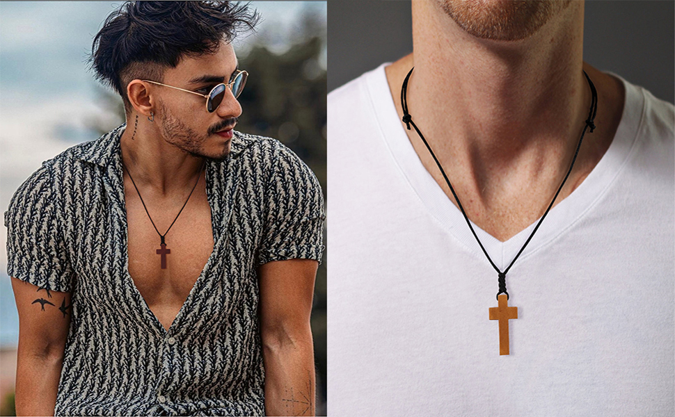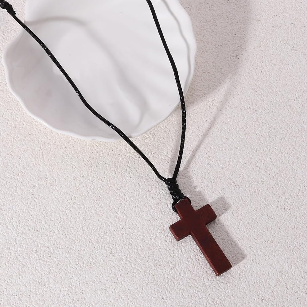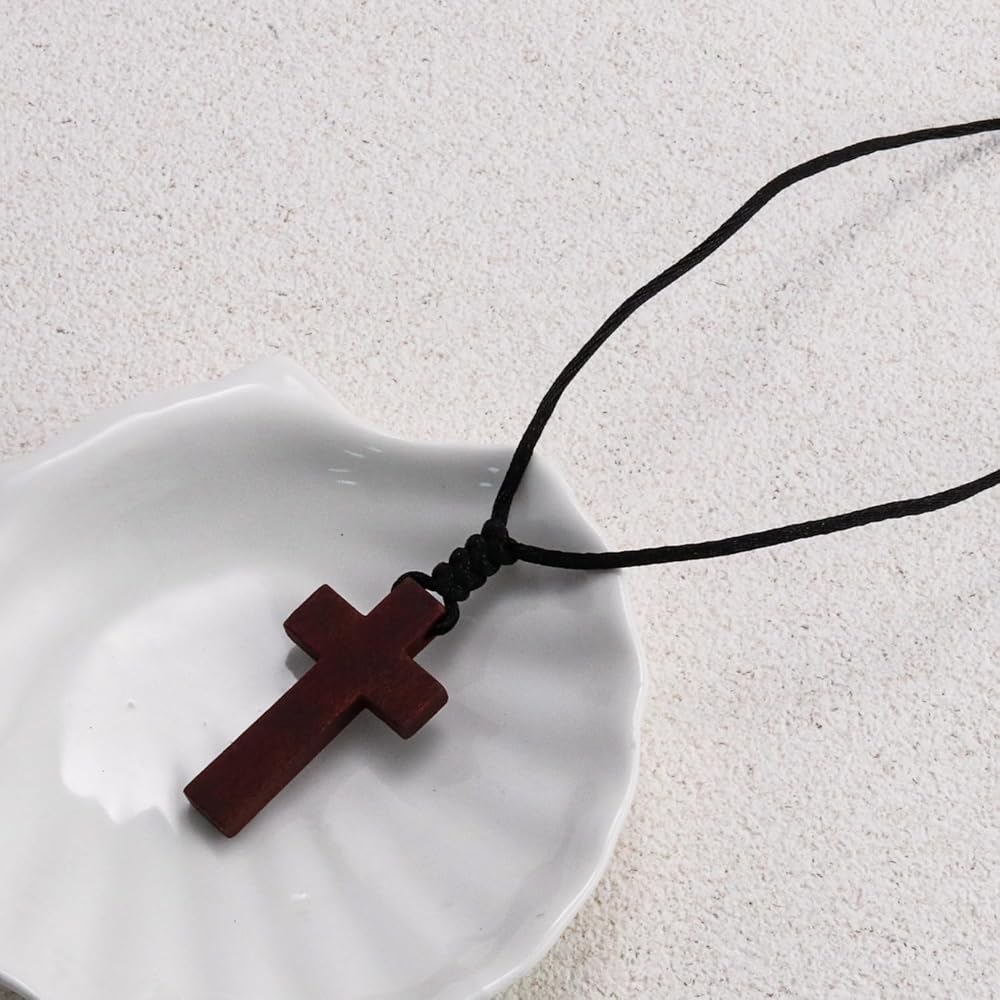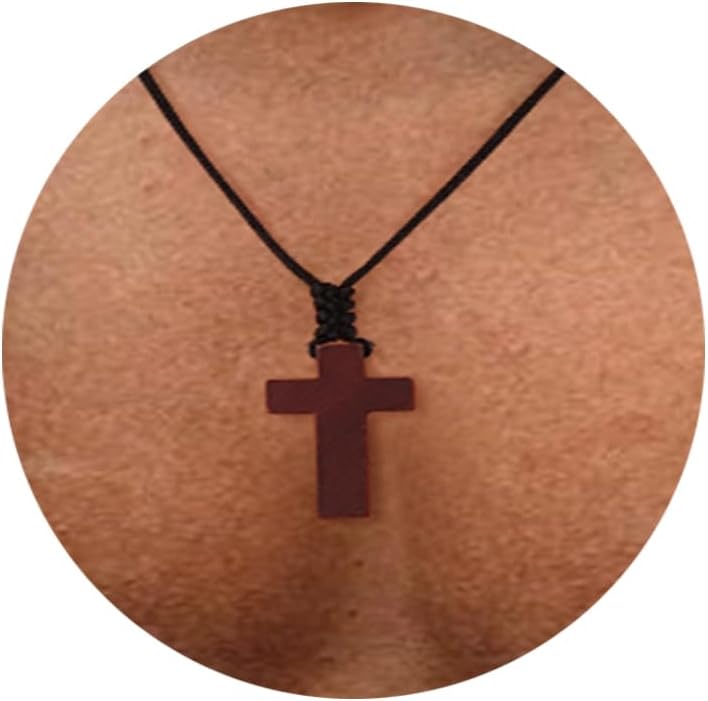 LZQIFA رائعة الخشب الطبيعي الصليب قلادة، الصليب قلادة قلادة للبنين والبنات قلادة هدية في سن المراهقة، سيارة خشبية مرآة الرؤية الخلفية قلادة