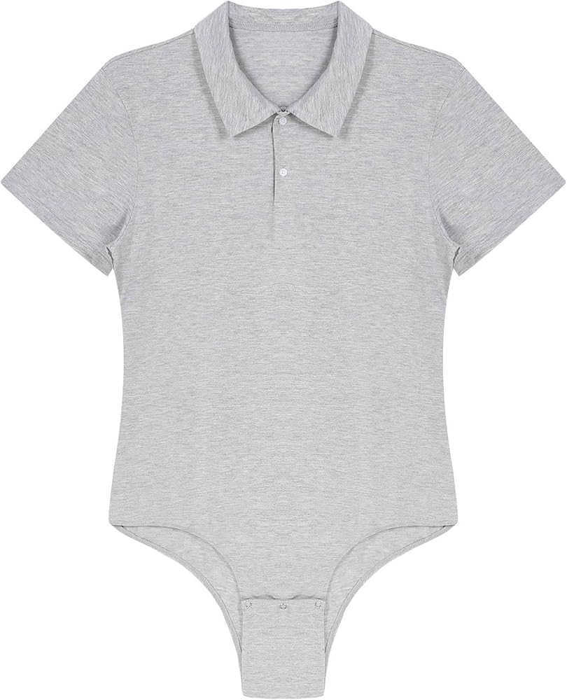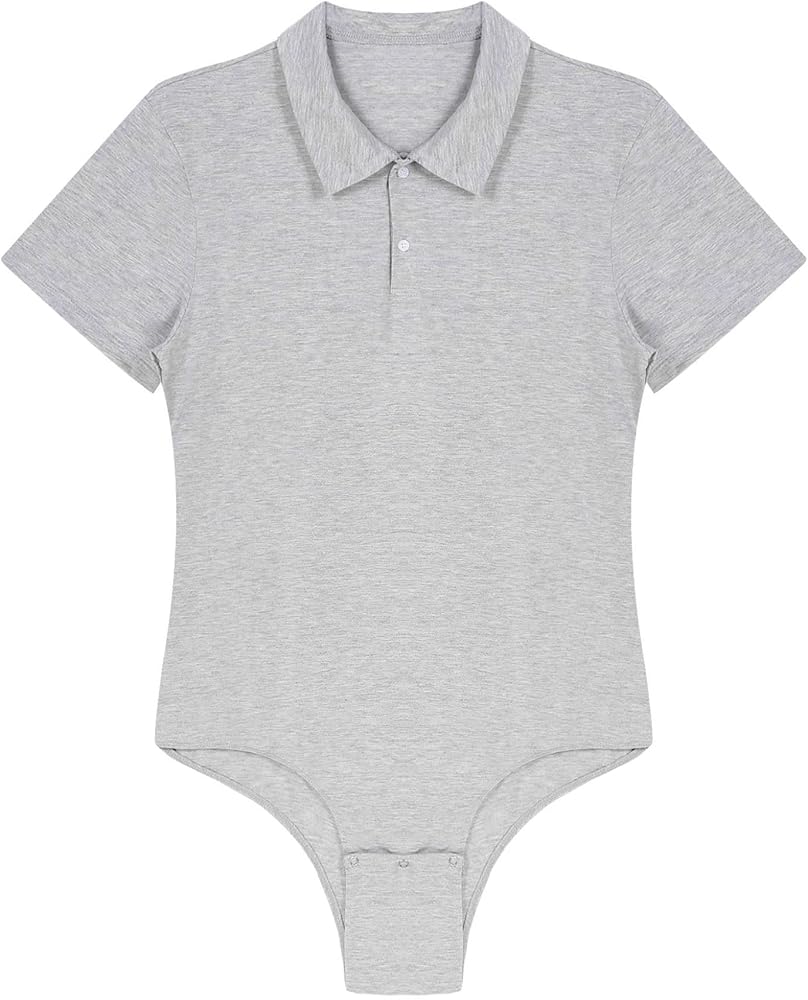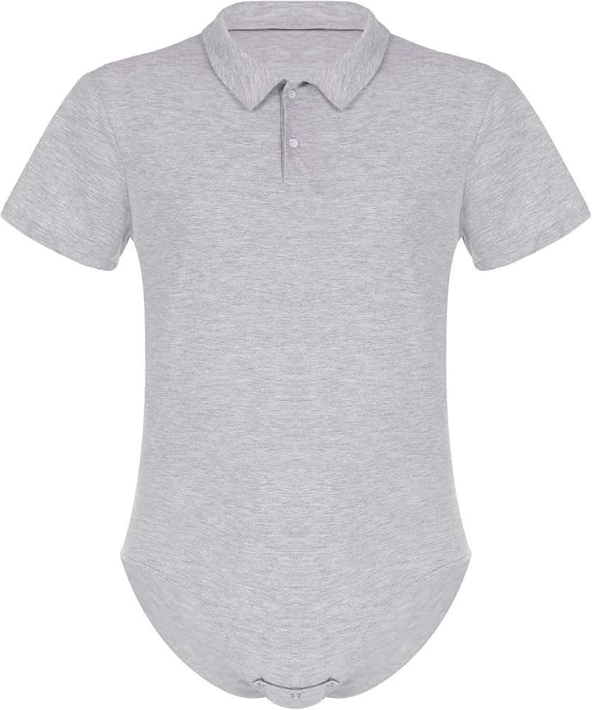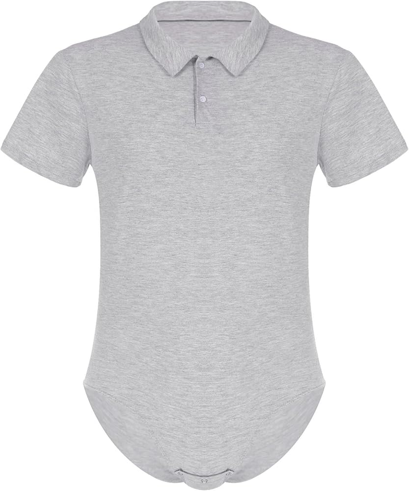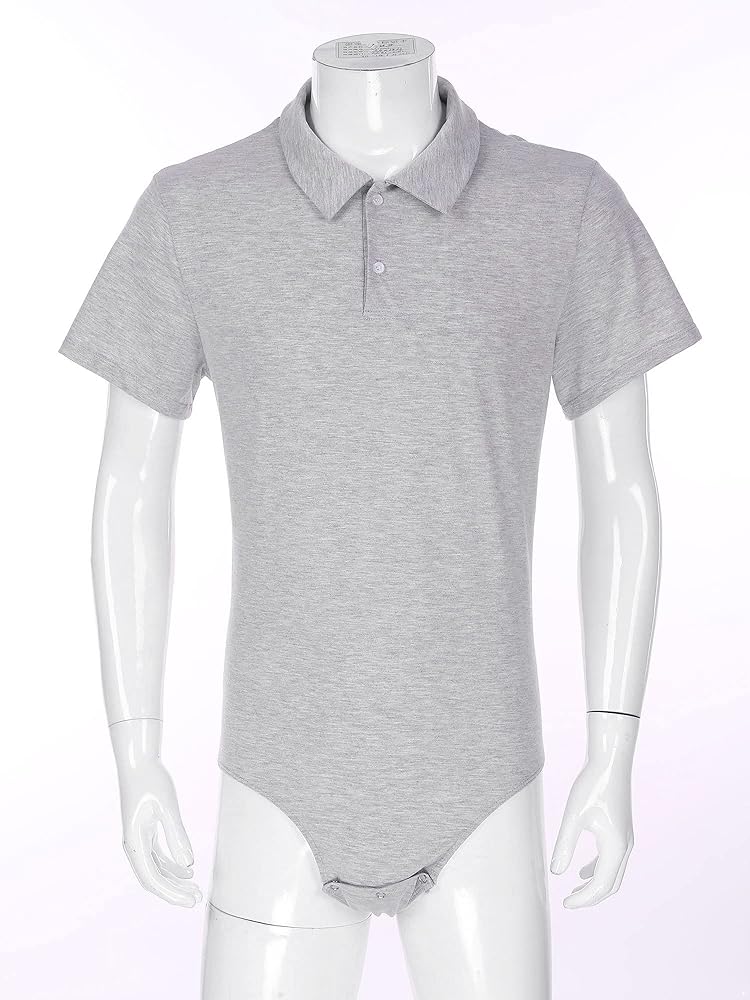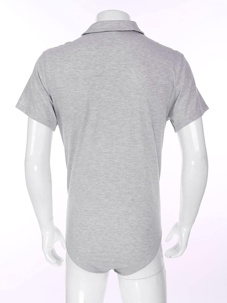 • Short sleeves, turn-down collar with two fasteners, men's shirt design bodysuit, solid color