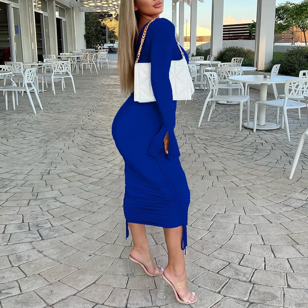 فستان ECHOINE للسيدات مثير بقصة ضيقة وأكمام طويلة بدون أكتاف مكشكشة وحفلات الكوكتيل