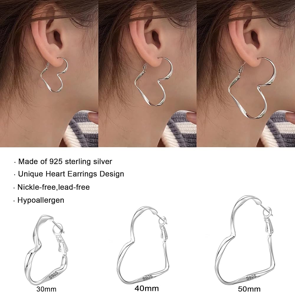 💕تصميم فريد من نوعه لأقراط القلب: هذه الأقراط الفضية البسيطة على شكل قلب الحب، تصميم ملتوي فريد، تجعلك أكثر جاذبية وجاذبية. الحب الرومانسي الأبدي واللانهاية مرتبطان معًا في هذه الأقراط الأنيقة اللطيفة على شكل قلب الحب للنساء. هذه الأطواق المصنوعة من الفضة الإسترلينية هي الزوج المثالي مع أي زي سواء في العمل أو الترفيه.