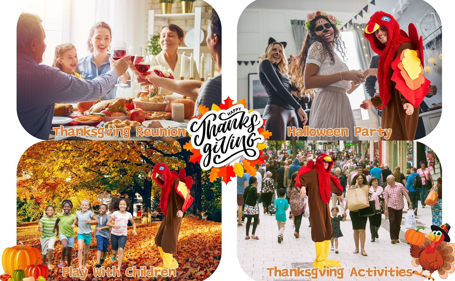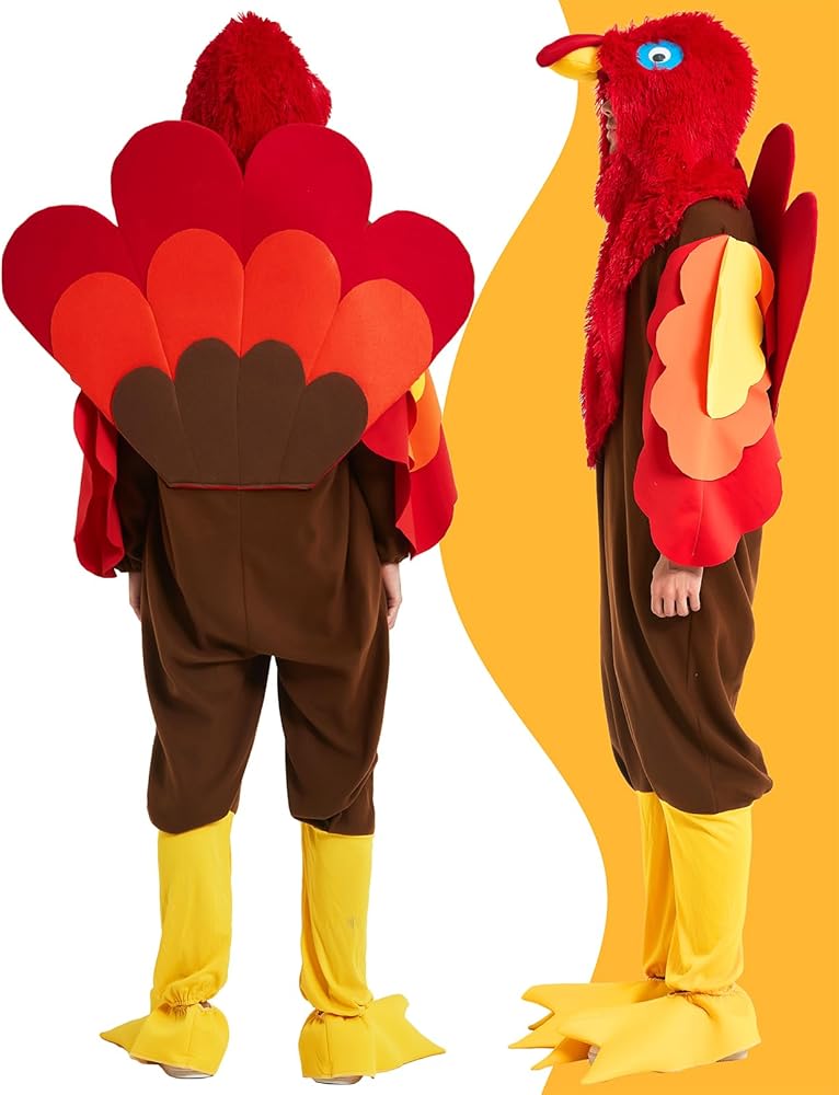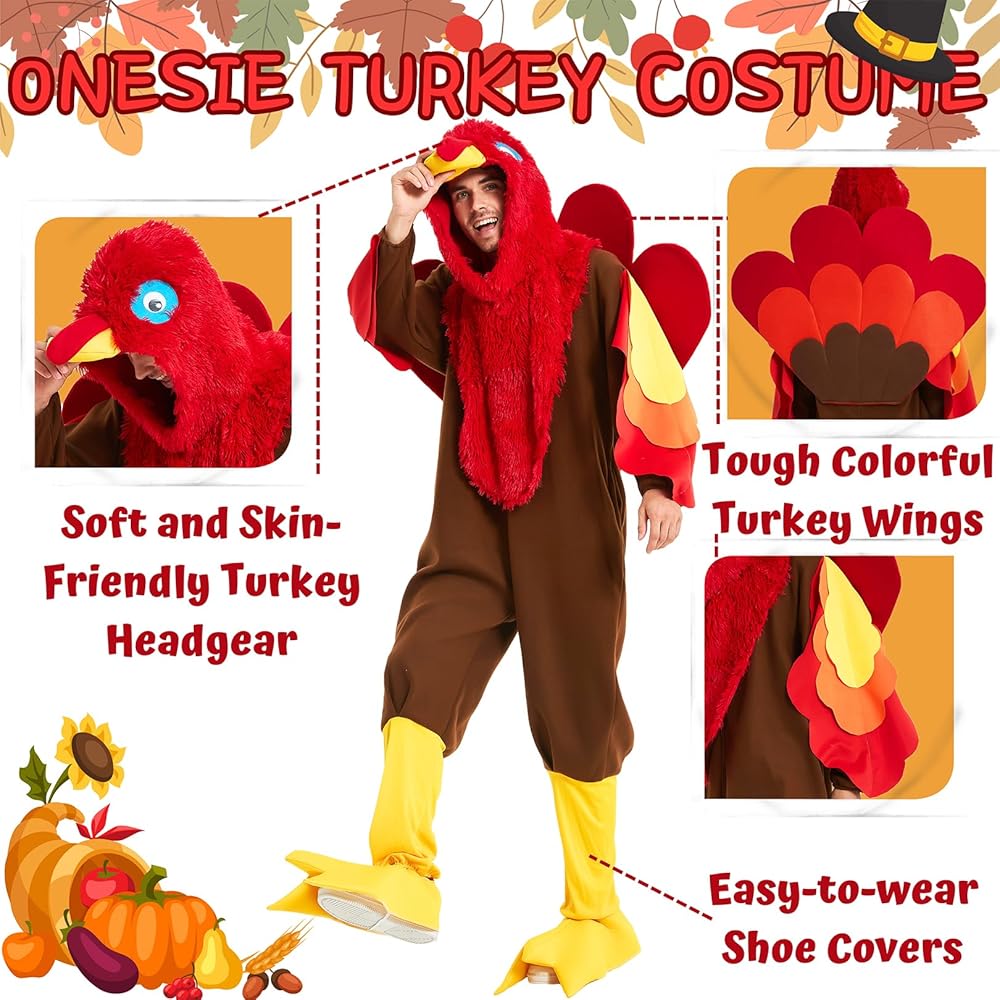 رائع لجميع أنواع المناسبات: مناسب جدًا لحفلات عيد الشكر، والهالوين، والحفلات التنكرية، وحفلات البيجامة، والتجمع، ولم شمل الأسرة. اختيار ممتاز للعب مع الأطفال، وسباق التوت البري، ولعبة الذرة، وسباق اليقطين، والتزلج على الجليد، وقيادة الديك الرومي. كما أنه هدية مثالية لعيد الشكر، والهالوين، والكريسماس، وأعياد الميلاد. ارتدي زي الديك الرومي الممتع واستمتع بمهرجاناتك مع العائلة والأصدقاء والجيران. استمتع بعيد شكر بهيج لا يُنسى لم يسبق له مثيل كما لم يحدث من قبل!