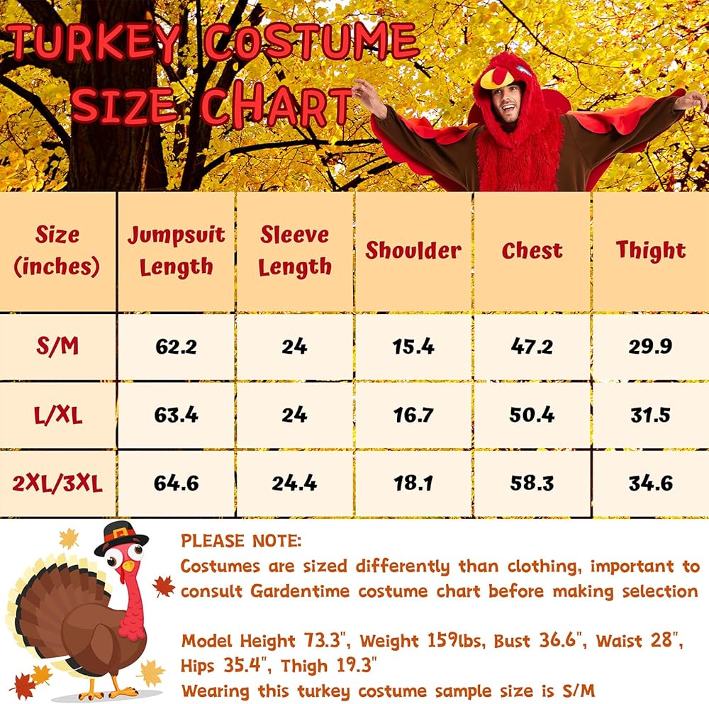 ثلاثة مقاسات للاختيار من بينها: مقاسات البالغين من ملابس الديك الرومي في Gardentime متوفرة بمقاسات M/XL/XXXL، يمكن أن تلبي احتياجات جميع الأشكال والأشكال من الأشخاص. يرجى التأكد من الرجوع إلى جدول المقاسات قبل الطلب، مقاس العارضة المصورة هو 6.1 بوصة/159 رطل، مقاس الارتداء M. تحتوي المعصمين والكاحلين وأغطية الأحذية في أزياء الفلانيل على أشرطة مرنة. لا يوجد شعور بعدم الراحة حتى عند ارتدائها لساعات. ارتدي الديك الرومي غطاء محرك السيارة والحفاظ على الراحة لتصبح تركيا غير مقيدة! طريقة الغسيل الموصى بها: التنظيف الجاف