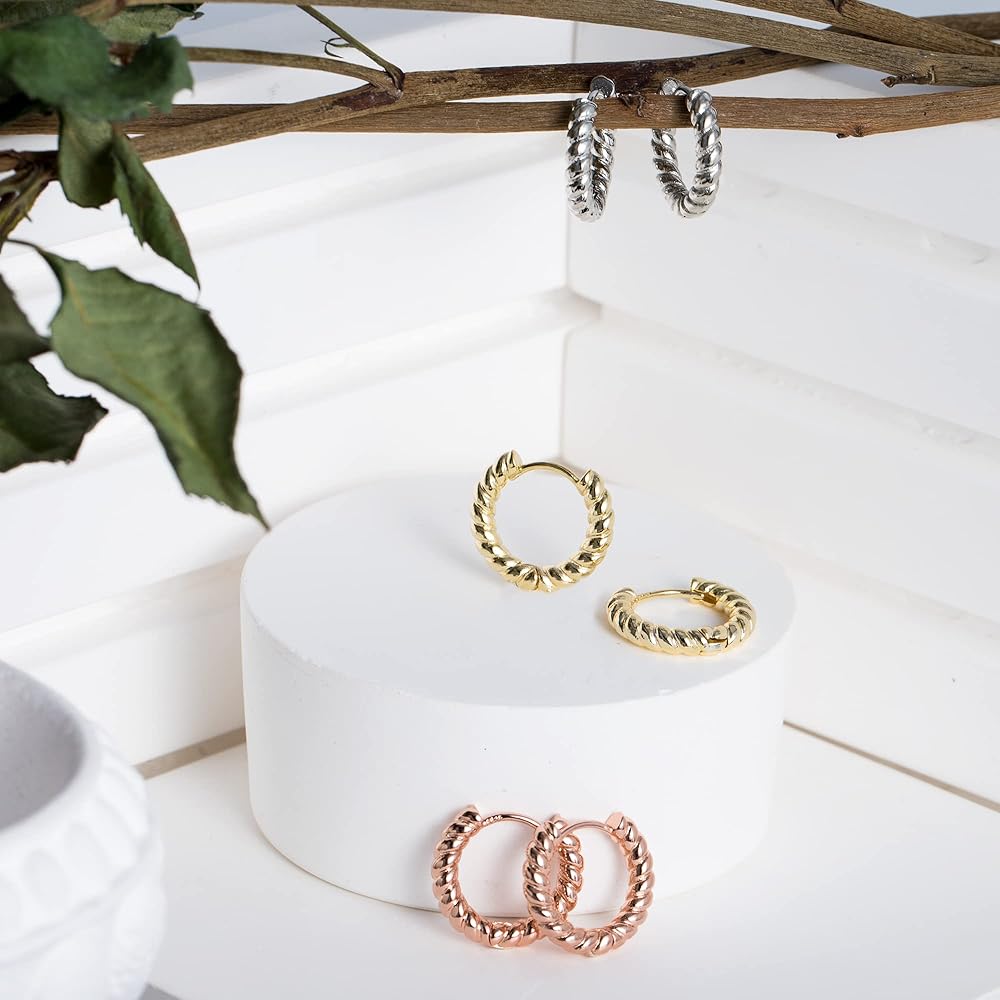 【مجموعة أقراط دائرية صغيرة ذهبية】3 أزواج من الأقراط الصغيرة الأكثر شعبية للنساء والفتيات، تحتوي مجموعة الأقراط الذهبية هذه على زوج واحد من الأطواق المرصوفة بالزركونيا المكعبة + زوج من الأطواق الذهبية البسيطة + زوج من الأطواق الذهبية الملتوية. أنفق المال على طلب واحد، وستحصل على 3 أزواج من الأقراط الذهبية الصغيرة المعتمدة من قبل الأشخاص الموضة.