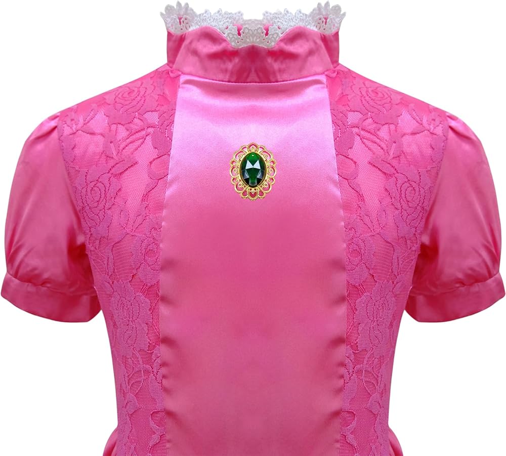 • تصميم أنيق: يتميز زي الأميرة بيتش بزخرفة من الدانتيل عند خط الرقبة، وتصميم الأكمام الفقاعية، وتنورة منتفخة باللون الأحمر الوردي الداكن وتنورة ذات طبقات، مما يزيد من انتفاخ التنورة، وبروش مدمج بأحجار خضراء على التنورة، وثلاثة أحجار لامعة مدمجة في التنورة التاج، يكشف حقًا عن مزاجه النبيل.