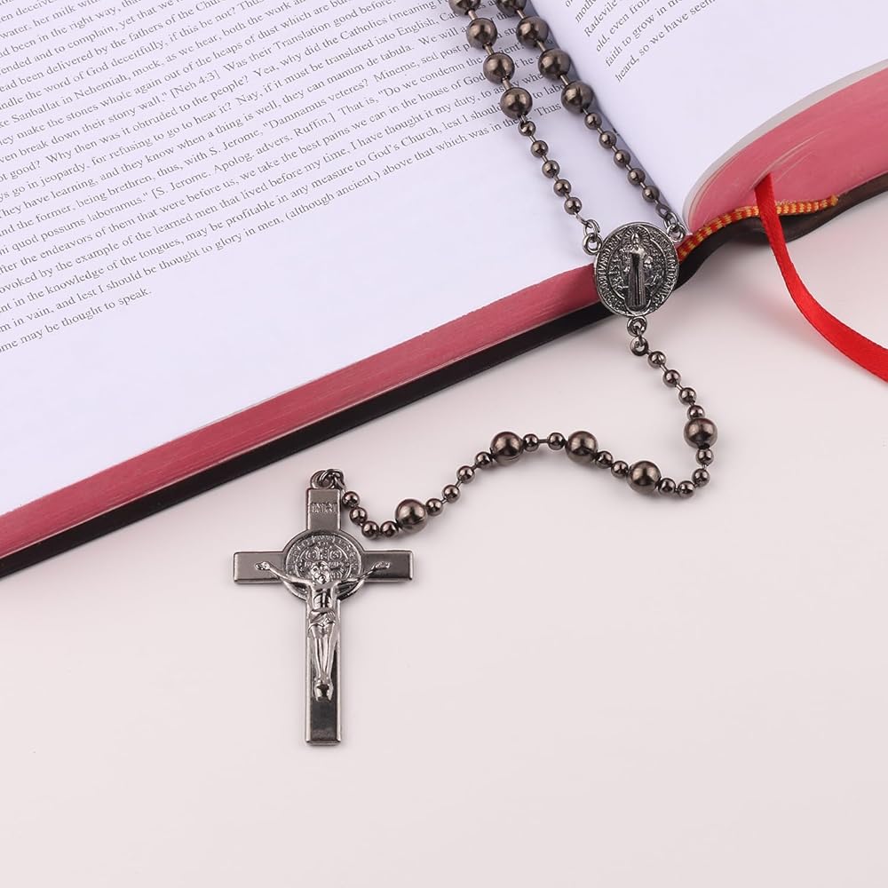 المقاس - الطول الإجمالي لهذه المسابح 21.5 سم. إنه طويل بما يكفي لارتدائه حول الرقبة، الصليب الكاثوليكي التقليدي الجميل ذو أعلى جودة وله تفاصيل رائعة ويبلغ طوله 2.16 سم. وسام المركز 1 بوصة.