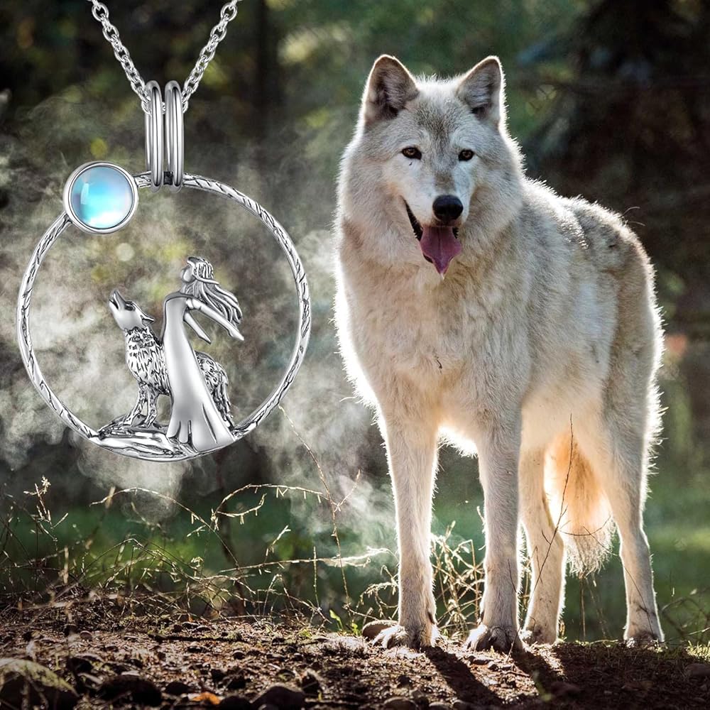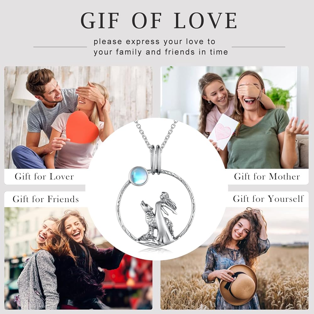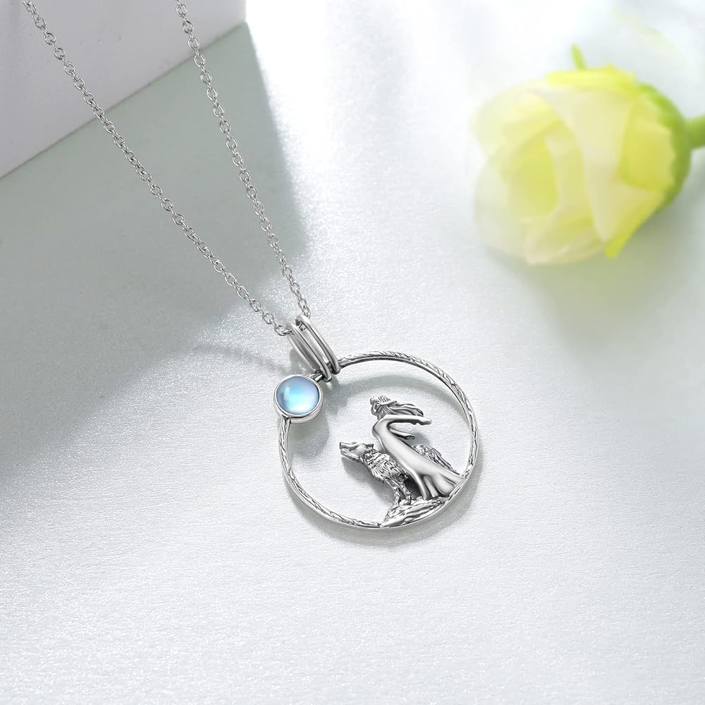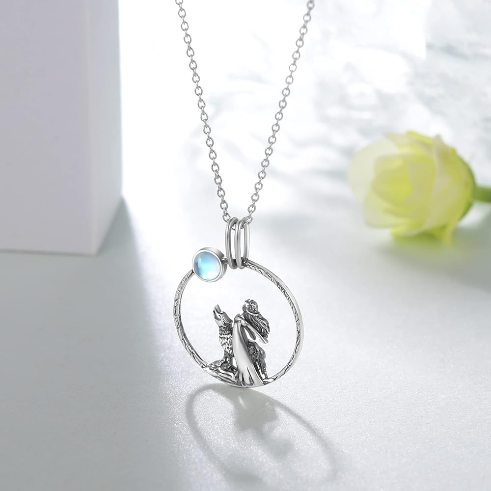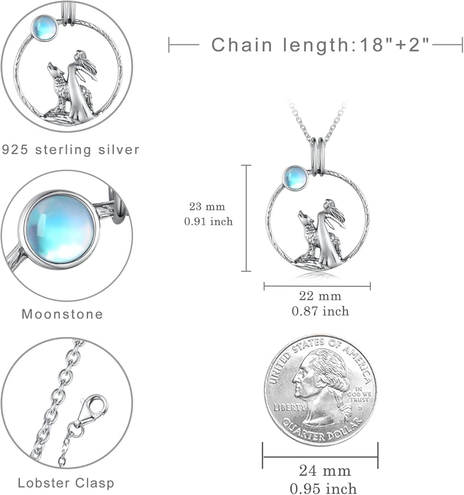 ♥ معلمات القلادة ♥-- حجم القلادة: 20*18 ملم/0.79*0.71 بوصة. إجمالي وزن الفضة: 5.71 جرام. الجوهرة: حجر القمر وزركونيا مكعب 5A. طول سلسلة رولو من الذئب والفتاة (مع مشبك جراد البحر): 18+2 بوصة قابل للتعديل.