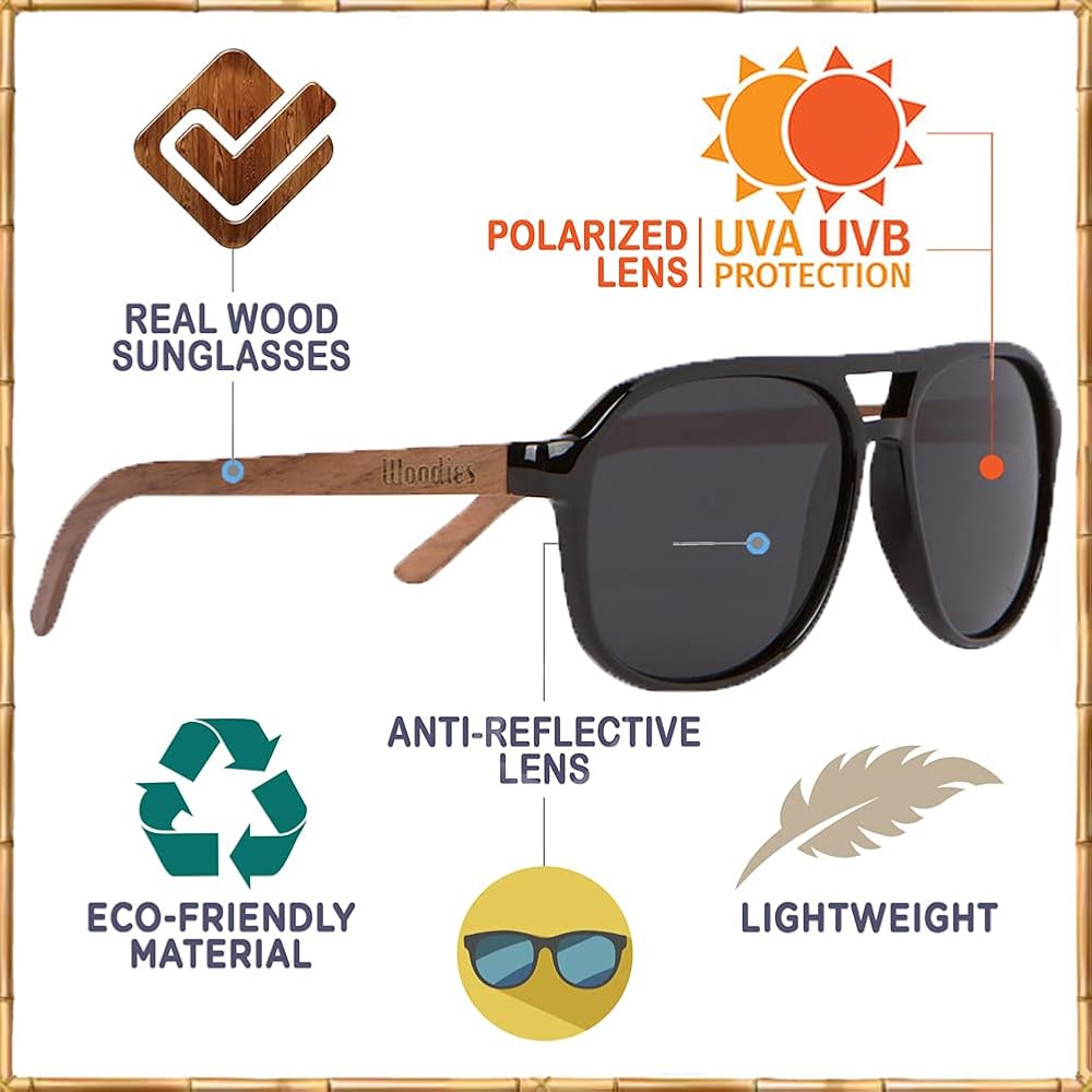 معتمدة من البحر الخشن مع أذرع ووديز صلبة من خشب افياتور حقيقي ومفصلات زنبركية مزدوجة من الستانلس ستيل، ملمس شبه خفيف الوزن على الإطارات البلاستيكية المرنة. رؤية سلسة للإبحار، حماية 100% من الأشعة فوق البنفسجية فئة A وB، عدسات سوداء مستقطبة شبه داكنة لأشعة المياه المفتوحة. يدوم طويلاً ومقاوم للعوامل الجوية ويمكن ارتداؤه في جميع الظروف. تضع ووديز معيارًا جديدًا للظلال الأنيقة ذات الجودة بأسعار معقولة تناسب أي كابتن أو مافريك أو حورية البحر. تتضمن النظارة الشمسية المصنوعة من خشب افياتور بي سي من ووديز حافظة متينة وقطعة قماش لتنظيف العدسات من الألياف الدقيقة وريشة غيتار خشبية.
