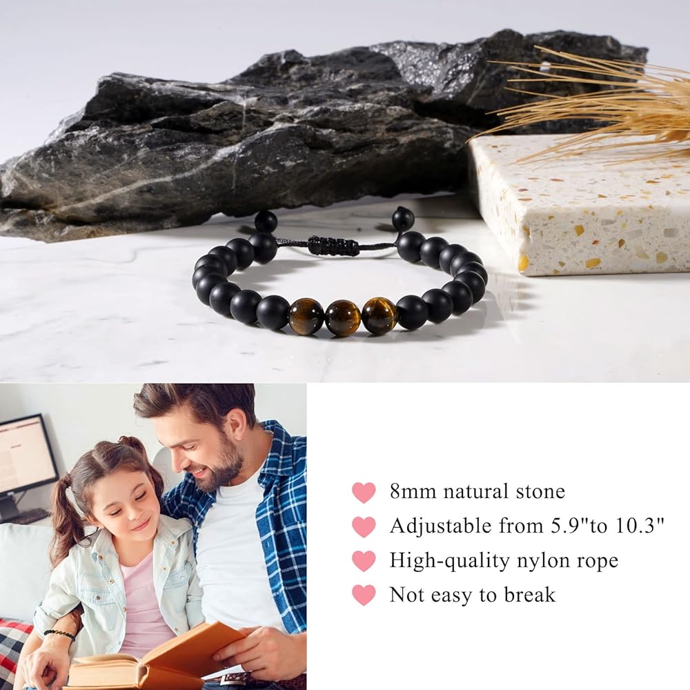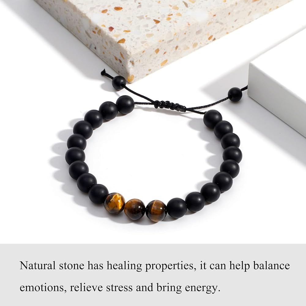 【الخامة: سوارنا الرجالي مصنوع من حجر عين النمر الطبيعي مقاس 8 مم وحجر العقيق الأسود، وهو خفيف الوزن ومناسب للارتداء اليومي وفي أي مناسبة.
