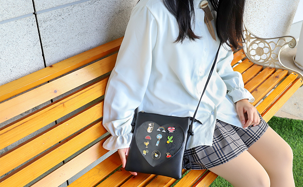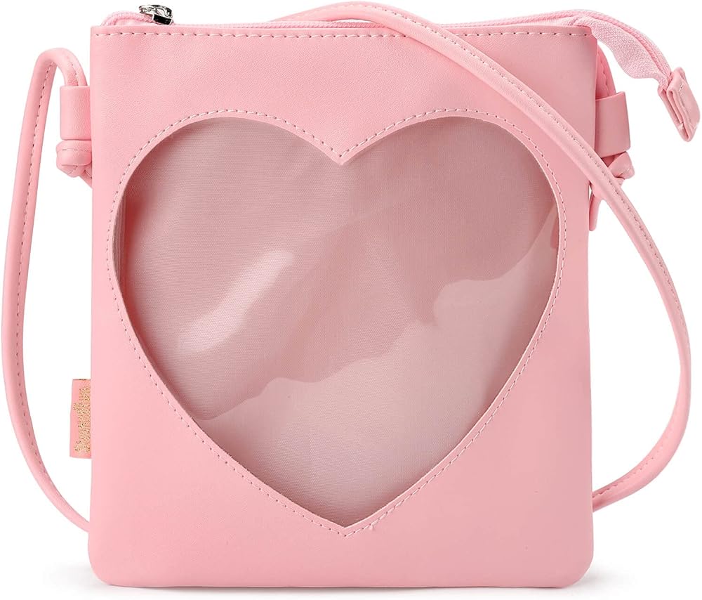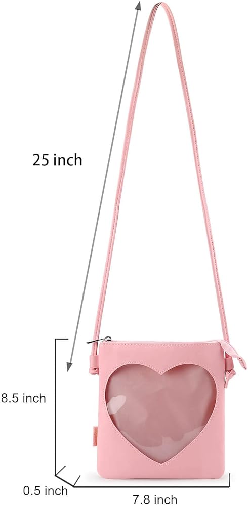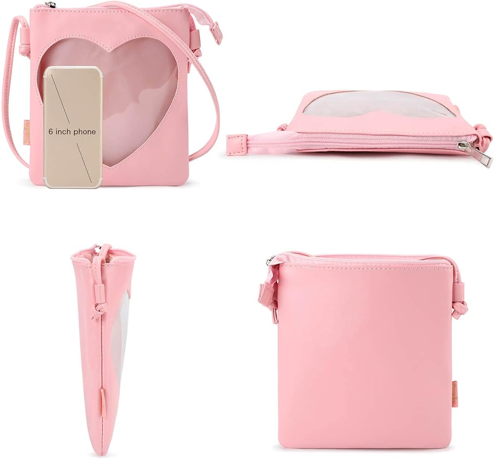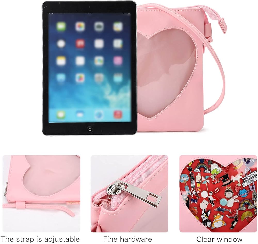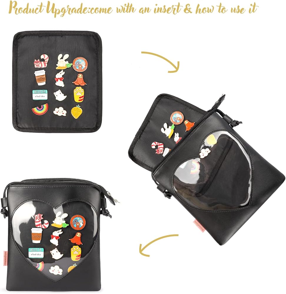 ✿ الهيكل✿: تحتوي حقيبة العرض الصغيرة هذه على جيب رئيسي، بما يكفي لحمل الهاتف والمحفظة والنظارات الشمسية والمفاتيح وبعض مستحضرات التجميل. نافذة واحدة شفافة على شكل قلب لعرض دبابيس أو ملصقات المينا. صغيرة ولكنها كافية لحمل الأشياء الأساسية، إنها جيدة اختيار لحقيبتك الأولى من ita. 【ترقية المنتج 】-يأتي مع إدراج حقيبة ita.