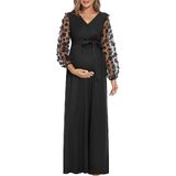 فستان حمل بأكمام من الدانتيل من بيوتي مع حزام، فستان طويل للأمومة مكشكش برقبة على شكل حرف V لحفل استقبال المولود الجديد وضيوف حفل الزفاف