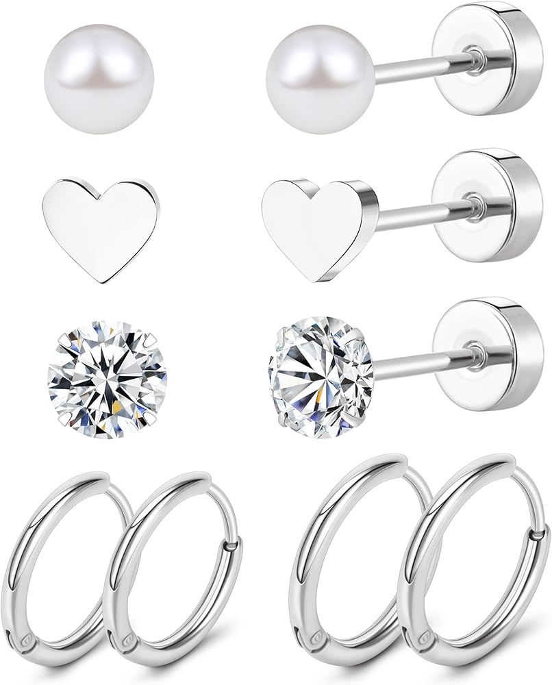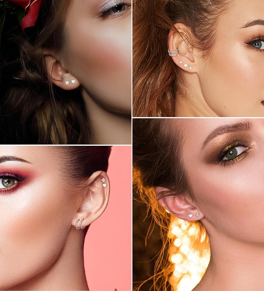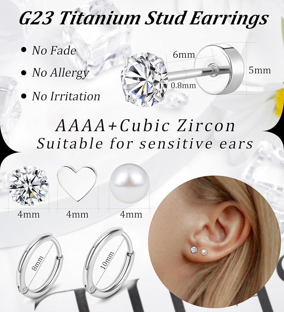 أقراط تيتانيوم لا تسبب الحساسية -- ستحصل على 3 أزواج من الأقراط المسطحة المصنوعة من التيتانيوم وزوجين من الأقراط الحلقية المصنوعة من التيتانيوم. بما في ذلك أقراط غضروف من التيتانيوم المكعب ومرصعة على شكل قلب من التيتانيوم وأقراط من التيتانيوم مرصعة باللؤلؤ ارتدي هذه الأقراط المسطحة المصنوعة من التيتانيوم والأقراط الحلقية بمفردها أو مع أقراطك الأخرى إما ستكون رائعة.