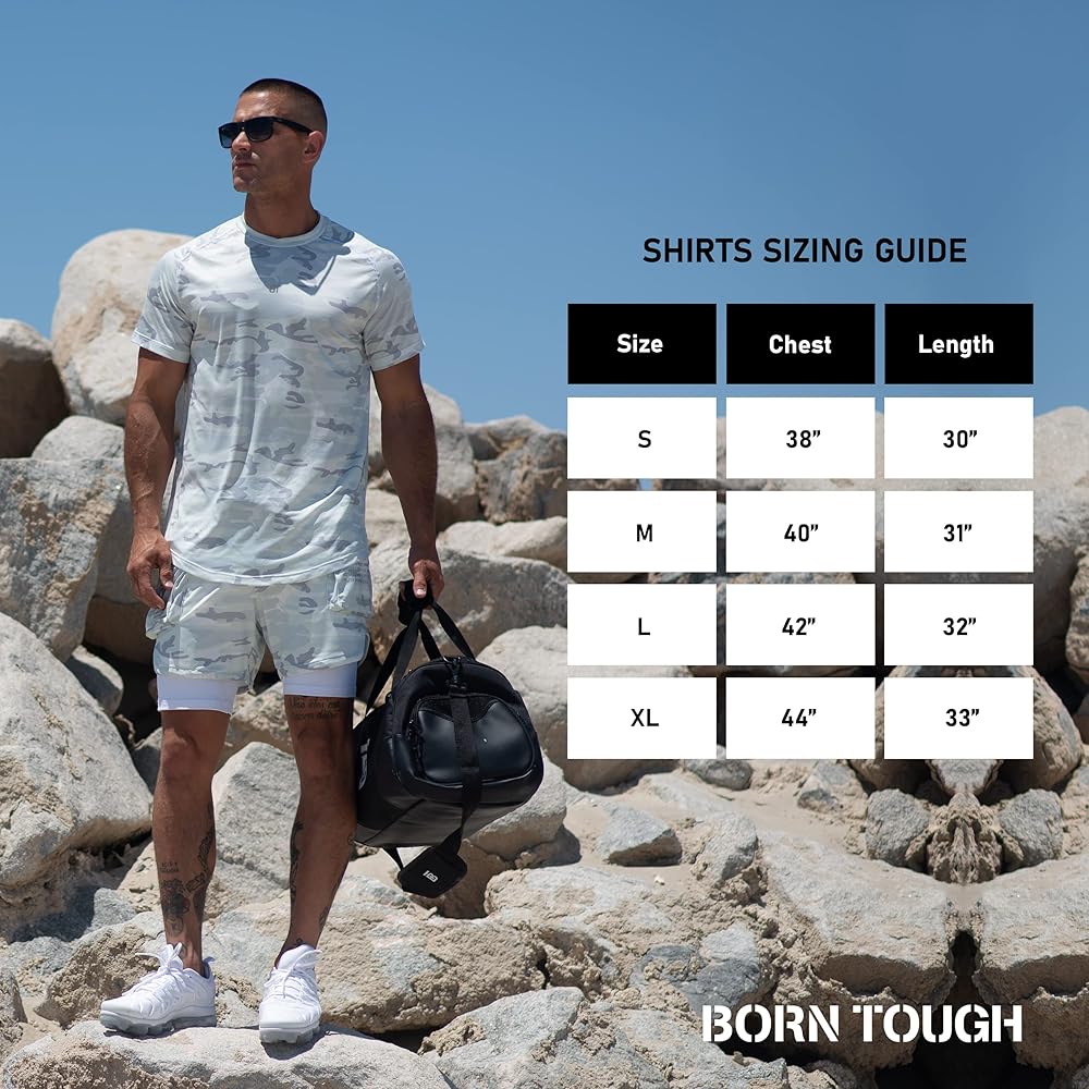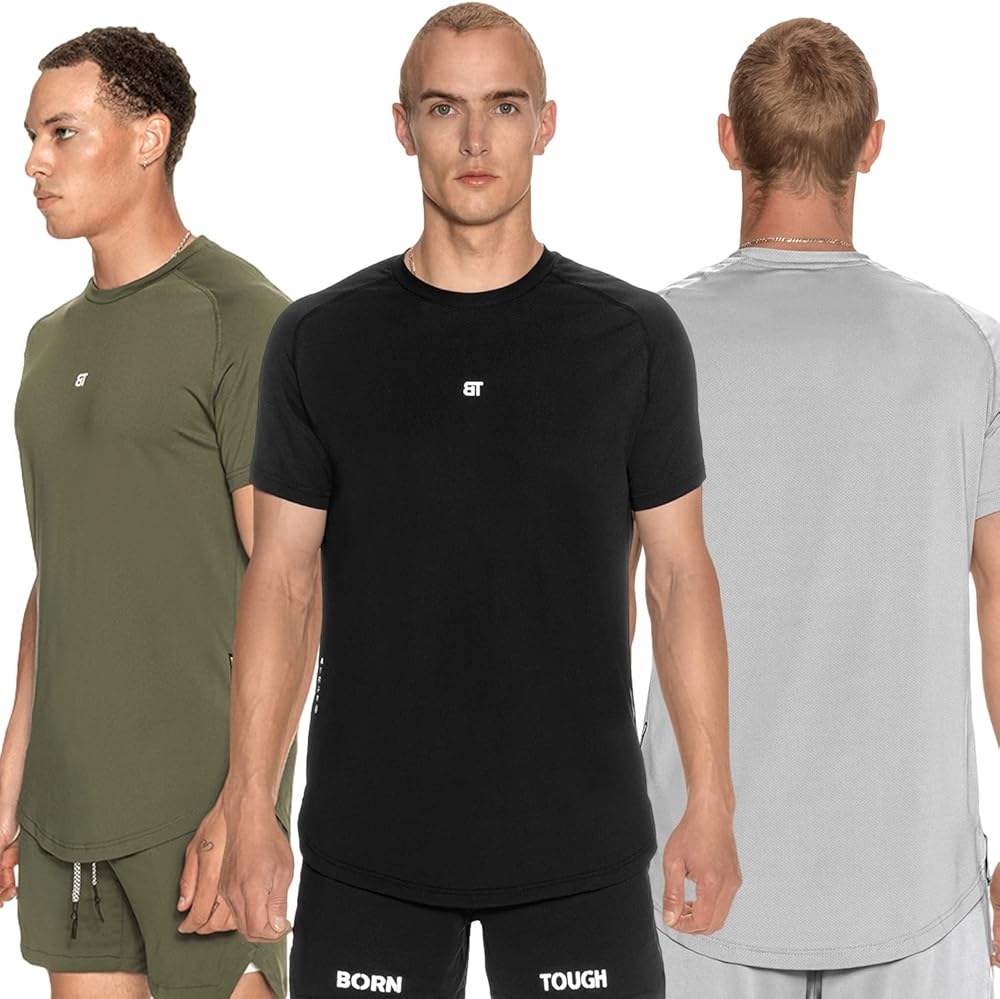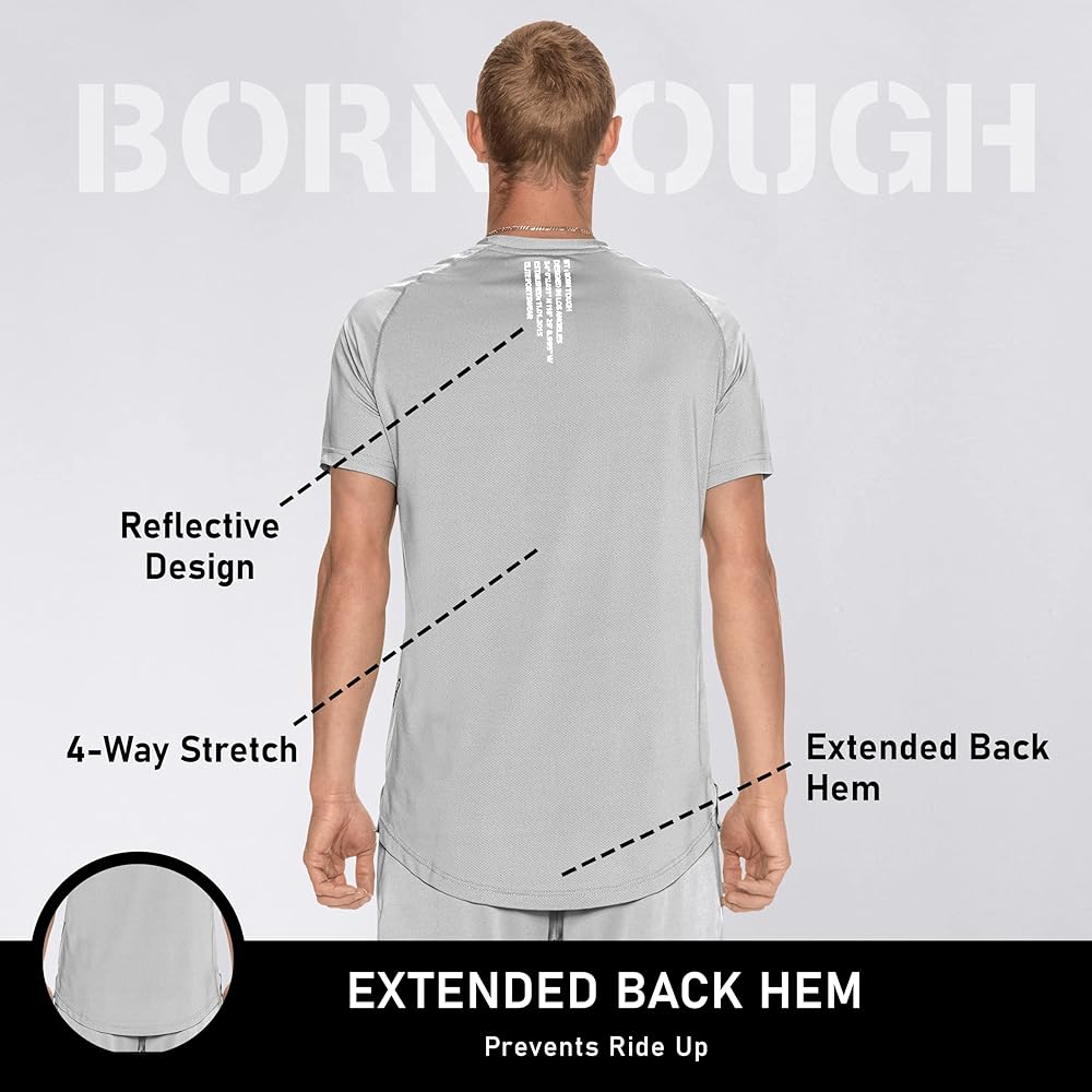 [حاشية خلفية ممتدة] - تتميز قمصان التمرين الرجالية Born Tough بأكمام قصيرة بحاشية خلفية ممتدة تحافظ على القميص في مكانه عند ممارسة التمارين مثل الجري والتمدد والقفز وكمال الأجسام وتدريبات اللياقة البدنية؛ ستمنع الحاشية الخلفية القميص من الارتفاع المستمر أو الانزلاق على ظهرك أثناء تحركك لمنع القماش من الاحتكاك بجلدك الخام؛ تقع الحاشية الخلفية أسفل الوركين ويمكن وضعها داخل بنطالك أو بنطالك الرياضي؛ سواء مدسوس أو معلق بحرية