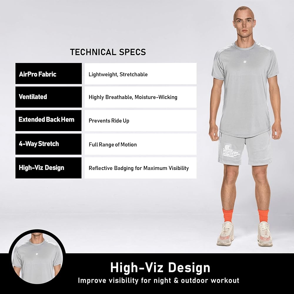 [مقاس حقيقي] - قمصان Born Tough Running الرجالية قصيرة الأكمام للتمرين هي ملابس تمرين مناسبة للشكل مع فتحة سفلية فضفاضة قليلاً، بينما تتلاءم بقية الملابس بإحكام مع عضلات الجزء العلوي من الجسم؛ يضمن التصميم المناسب لقمصان الجري الرجالية قصيرة الأكمام عدم وجود قماش فضفاض يمكن الإمساك به أثناء إظهار بنيتك العضلية أثناء ممارسة التمارين؛ يحتوي الجزء الخارجي على سطح عاكس يساعد على تحسين الرؤية