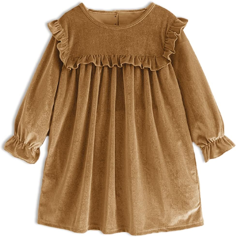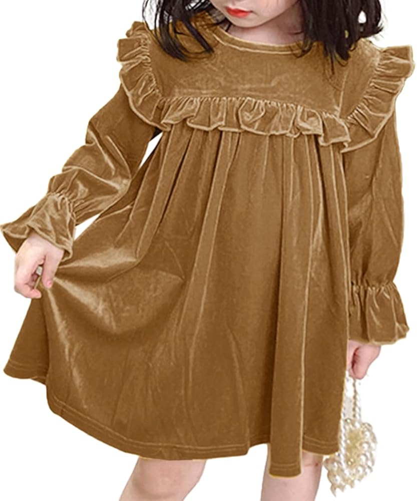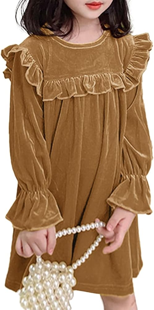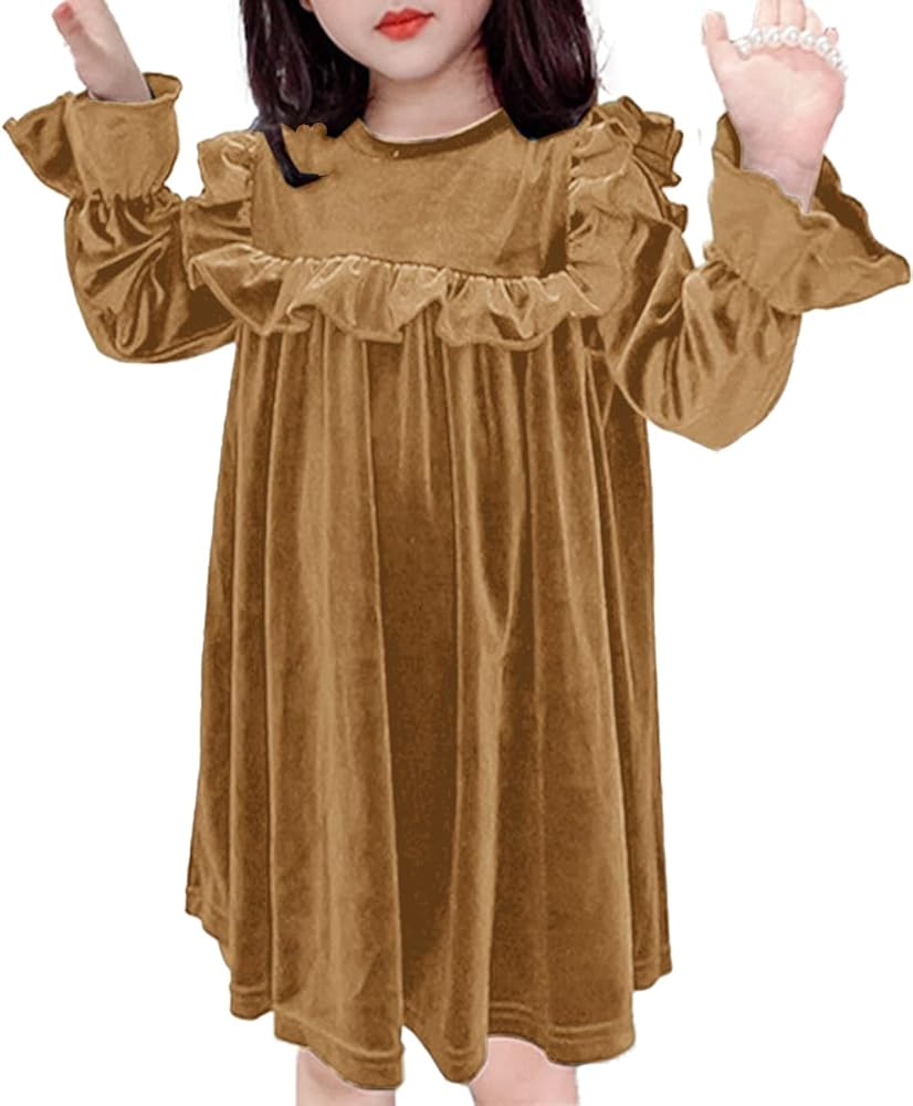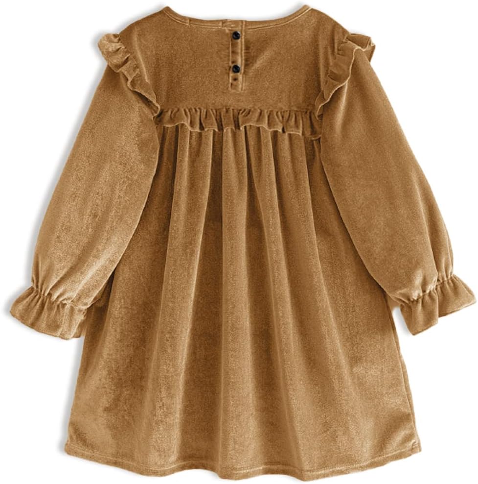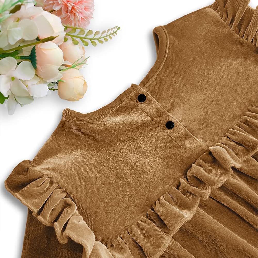 🍁تصميم فستان مخملي للفتيات - يتميز بتفاصيل مرفرفة على الكتف والصدر، وأساور أكمام مكشكشة، ولون ثابت لامع، يظهر الجانب الأنيق والرائع لفتاتك الجميلة، ويبرز من الحفلة. رقبة دائرية، وزر خلفي أنيق، سهل الارتداء والخلع.