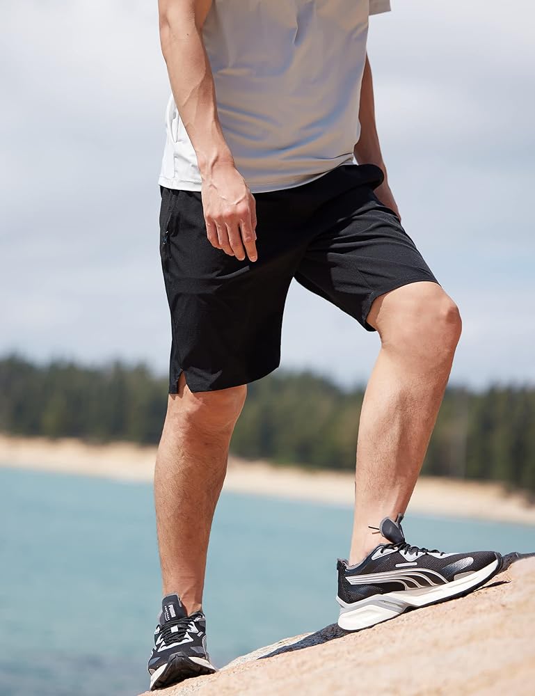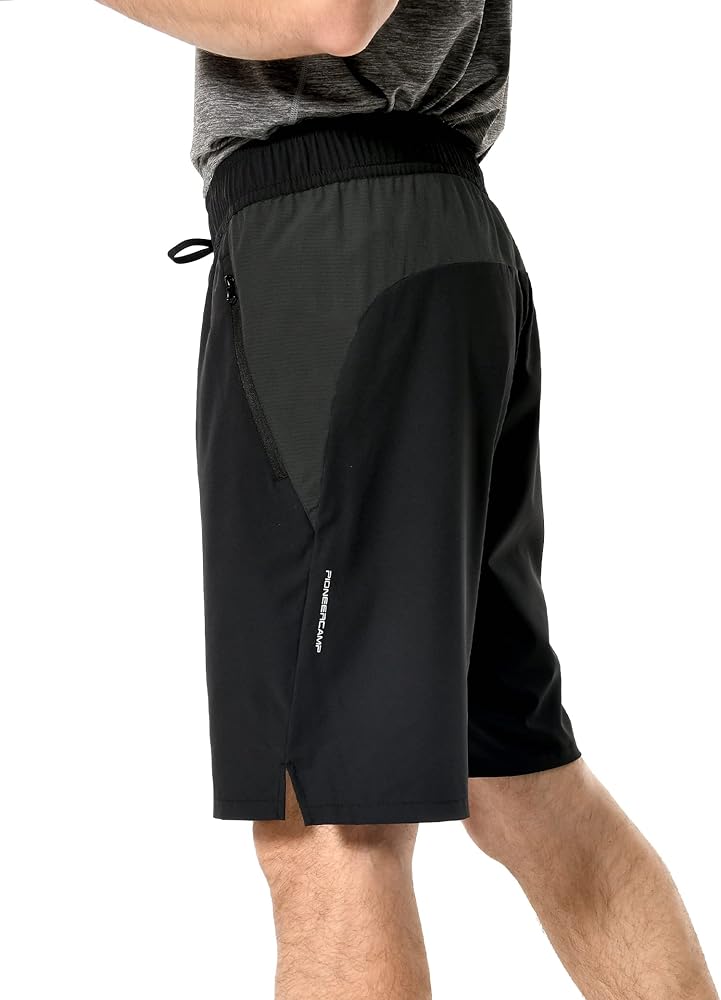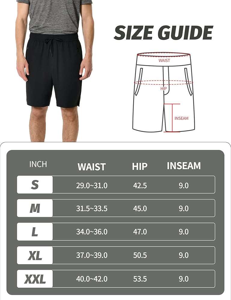 شورت رياضي للرجال بثلاثة جيوب بسحاب: شورت التمرين هذا للرجال يتميز بحزام خصر مطاطي مع رباط داخلي قابل للتعديل لملاءمة مخصصة. تصميم فضفاض، جيبان جانبيان مخفيان بسحاب وجيب خلفي مخفي بسحاب يسمح لك بوضع هاتفك أو محفظتك أو مفاتيحك أو غيرها من الأشياء الصغيرة أثناء التنقل.
