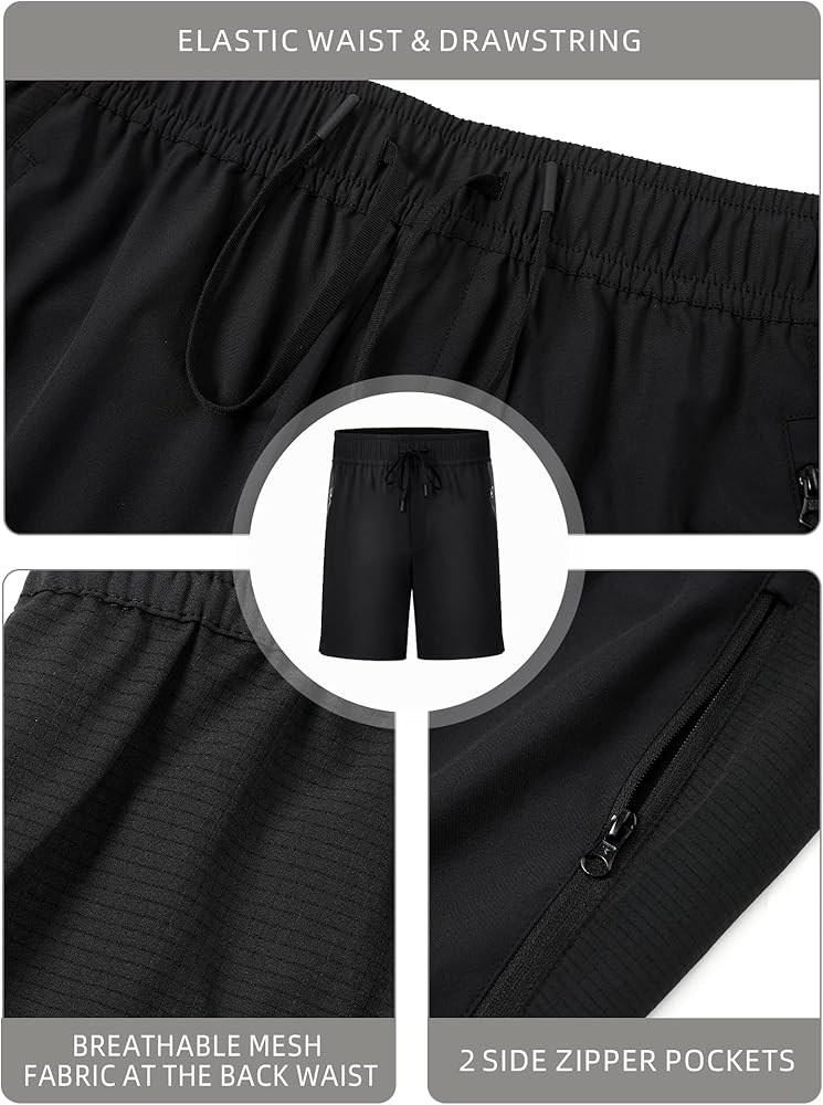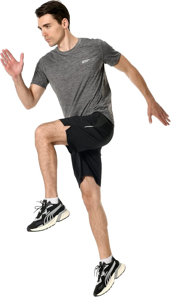 شورت التمرين الرجالي: يزن شورت الجري الرجالي خفيف الوزن 7 أونصات فقط، بينما يضيف محتوى الألياف اللدنة في القماش التمدد والنعومة إلى الشورت لتوفير الراحة والمرونة أثناء التمرين.