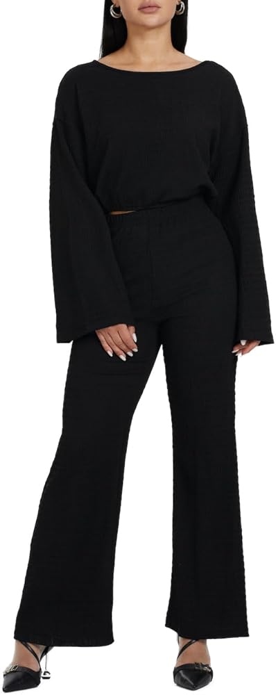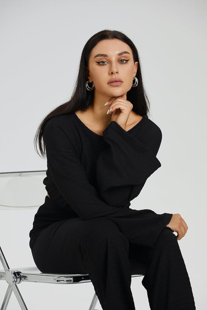 - التفاصيل - يكمل القميص ذو الأكمام الطويلة السراويل الواسعة الأنيقة بنفس القدر. يتميز الجزء العلوي بياقة دائرية مريحة وتصميم بلوفر لسهولة الارتداء