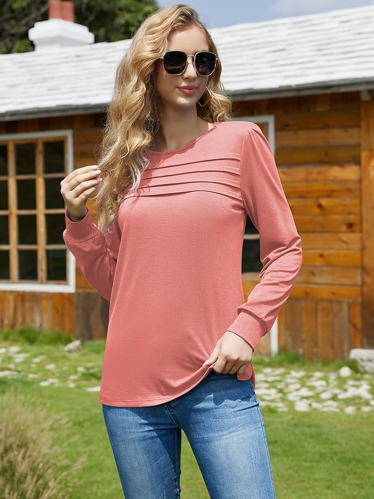 • 👑【المميزات】: التونيك طويل الأكمام يبرز منحنى خصرك بشكل صحيح، مما يسمح لك بإظهار سحرك الأنثوي! الشرائط الأربعة المطوية في الجزء الأمامي من الجزء العلوي جذابة وأنيقة لتجعلك تبدو أجمل. الطيات الصغيرة على أكتاف الأكمام المنتفخة عبارة عن طبقات، والأكمام الفضفاضة تخفي اللحم على الذراعين، والأصفاد لطيفة. هذا أسلوب أنيق وخالد!
