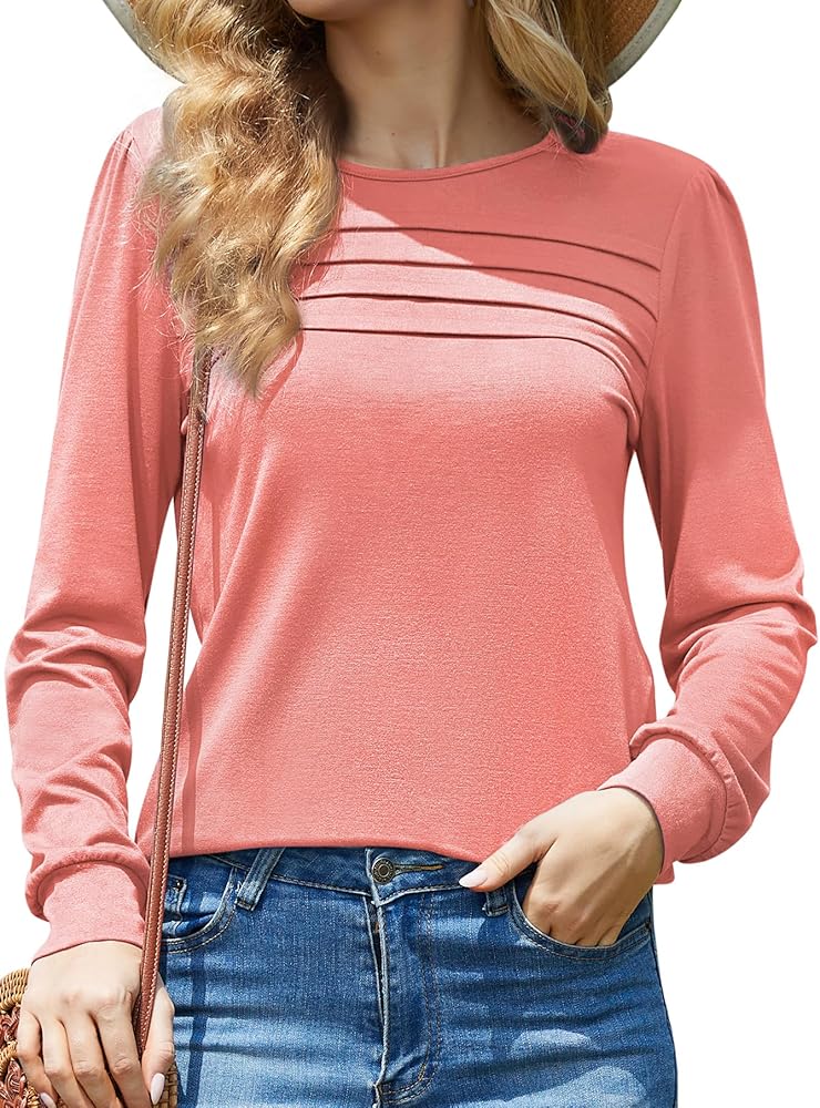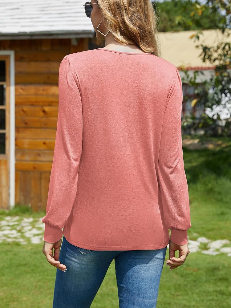 • ☀ 【صديقة للبشرة】: القمصان ذات الأكمام الطويلة المنتفخة ناعمة وقابلة للتمدد، والسر هو أننا أضفنا 35% من القطن الطبيعي. الجزء العلوي أكثر سمكًا قليلاً من القميص، وليس شفافًا. سوف يرافقك الجزء العلوي بحرارة في الخريف والشتاء.