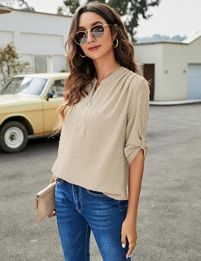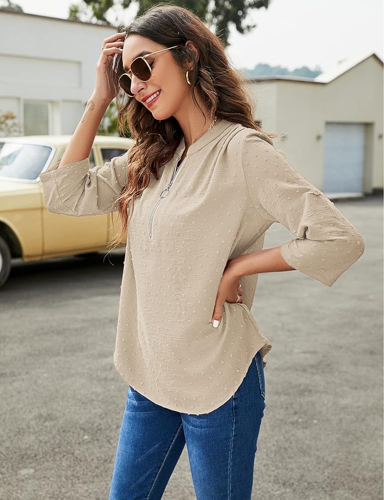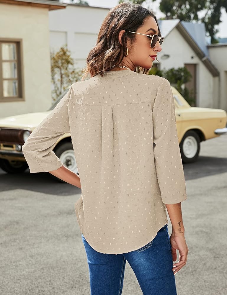 نسيج صديق للبشرة: تم تصميم هذه البلوزة النسائية ذات الأكمام الطويلة من نسيج منقط سويسري، خفيفة الوزن وواسعة، ومسامية، وناعمة، ومريحة، وصديقة للبشرة.
