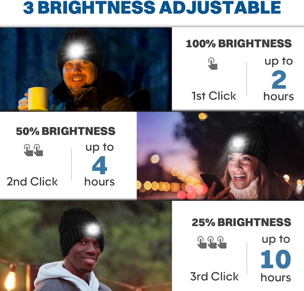 مقاس واحد يناسب معظم الأشخاص: هذه القبعة الشتوية للجنسين ذات المصباح الأمامي مرنة وناعمة ومريحة. يناسب الرجال والنساء والمراهقين، المصباح الأمامي سهل الإزالة وإعادة التثبيت، ويمكن شحنه من أي منفذ USB، ويستغرق 1.5 ساعة فقط للشحن الكامل. يمكن غسله يدويًا في درجة حرارة أقل من 30 درجة مئوية، يرجى خلع الضوء قبل الغسيل.