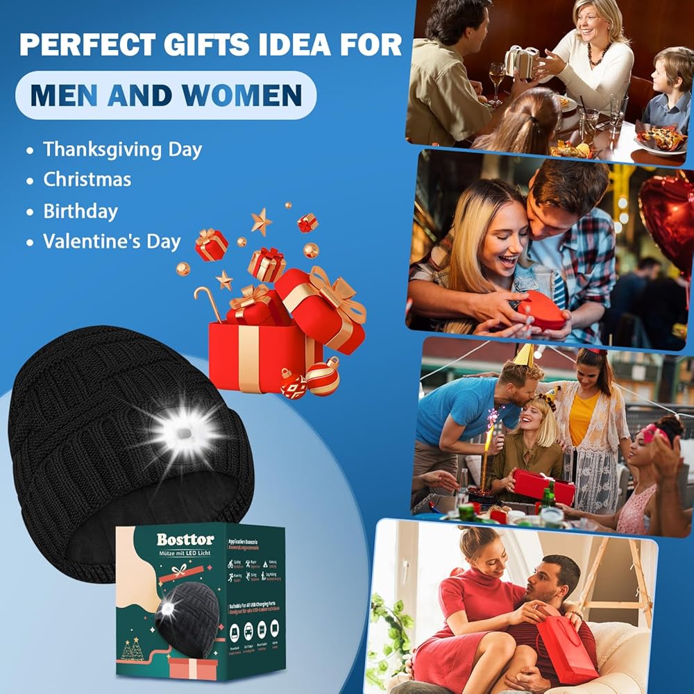 قبعة صغيرة مضاءة بـ 6 مصابيح LED: قبعة شتوية من Bosttor مزودة بإضاءة مدمجة تتميز بـ 6 مصابيح LED مدمجة، وهي حل إضاءة بدون استخدام اليدين مع ثلاثة أوضاع عمل. يوفر الوضع الأول أكثر من 6 ساعات من السطوع، ويوفر الوضع الثاني أكثر من 4 ساعات من السطوع، ويوفر الوضع الثالث أكثر من 10 ساعات من الوميض الأحمر والأزرق لحالات الطوارئ، مما يوفر الأمان والثقة لعشاق الهواء الطلق.