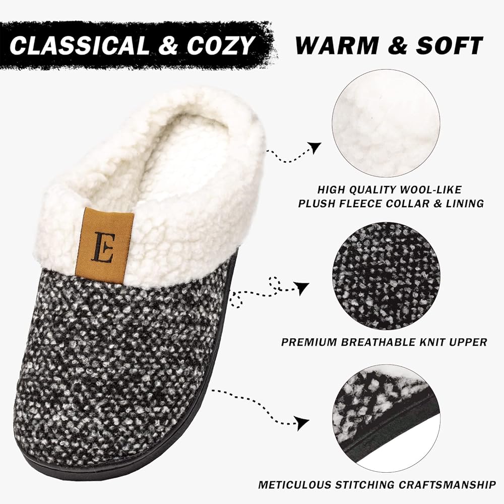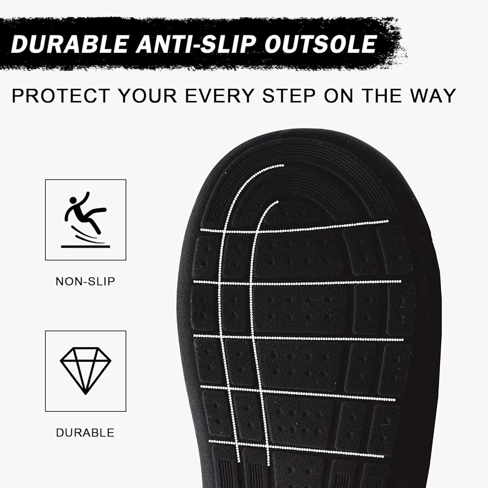 نعل خارجي مضاد للانزلاق ونعل داخلي من الإسفنج الذكي: هذه النعال المنزلية ذات المقدمة القريبة مع مقابض نعل متينة من المطاط اللدن حراريًا غير قابلة للانزلاق على الأرض توفر الثبات والأمان، وتحمي كل خطوة على الطريق. نعل داخلي مريح مبطن بإسفنج ميموري سميك عالي الكثافة ومادة إي في إيه التي تقلل من إجهاد العضلات وتمنحك شعورًا بالراحة.