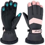 قفازات التزلج من بوجليا قفازات الثلج للنساء، قفازات مقاومة للماء على الجليد، قفازات معزولة تعمل باللمس للطقس البارد، قفازات تزلج دافئة مقاومة للرياح مع جيب
