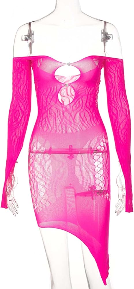 المواد: 93% نايلون، 7% سباندكس. فستان الفتيات الملصق مصنوع من البوليستر عالي الجودة خفيف الوزن وملمس الجلد ومريح في الارتداء. فستان طويل نسائي مثير مجوف ناعم جدًا ومتين وجيد التهوية، يظهر المزيد من خطوط جسمك وسحر أنثوي، يجعلك تتألق بين الناس!