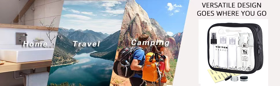 ✈حاوية سفر لأدوات الزينة - زجاجات السفر الفارغة من Yictek مع حقيبة أدوات الزينة متوافقة تمامًا مع قاعدة 3-1-1 للسوائل المحمولة في الرحلات المحلية والدولية.
