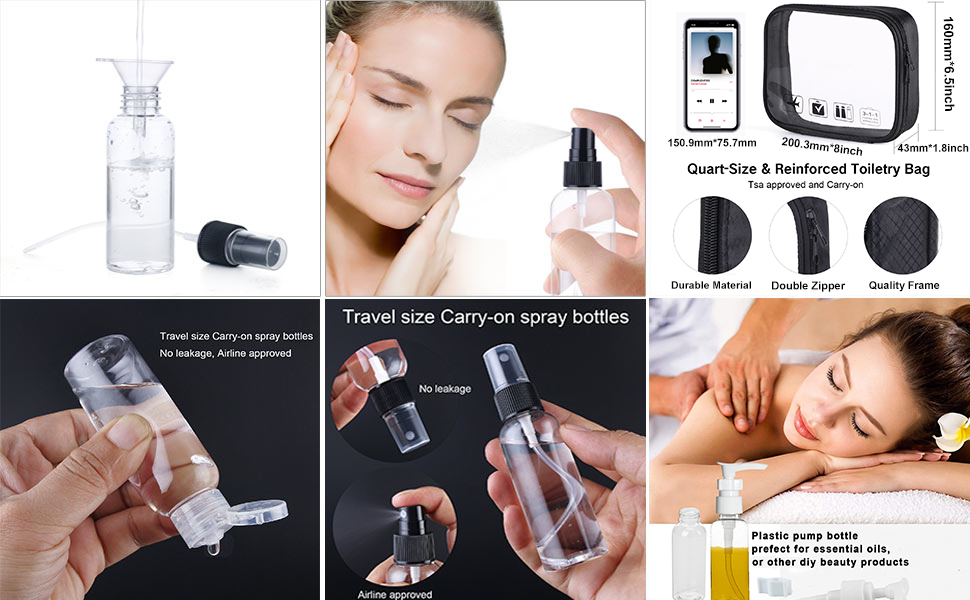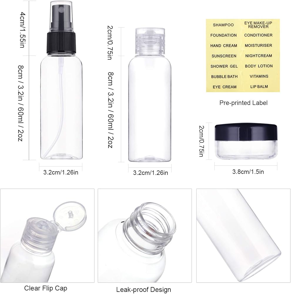 🎁رائعة للسفر أو العطلات: تشتمل مجموعة الزجاجات بحجم السفر هذه على: زجاجات ضغط بلاستيكية قابلة لإعادة الملء سعة 4 × 2 أونصة، وزجاجات رش صغيرة بحجم 1 × 2 أونصة، وبرطمانات كريم بحجم 0.33 أونصة وملعقة كبيرة وماصة وقمع.