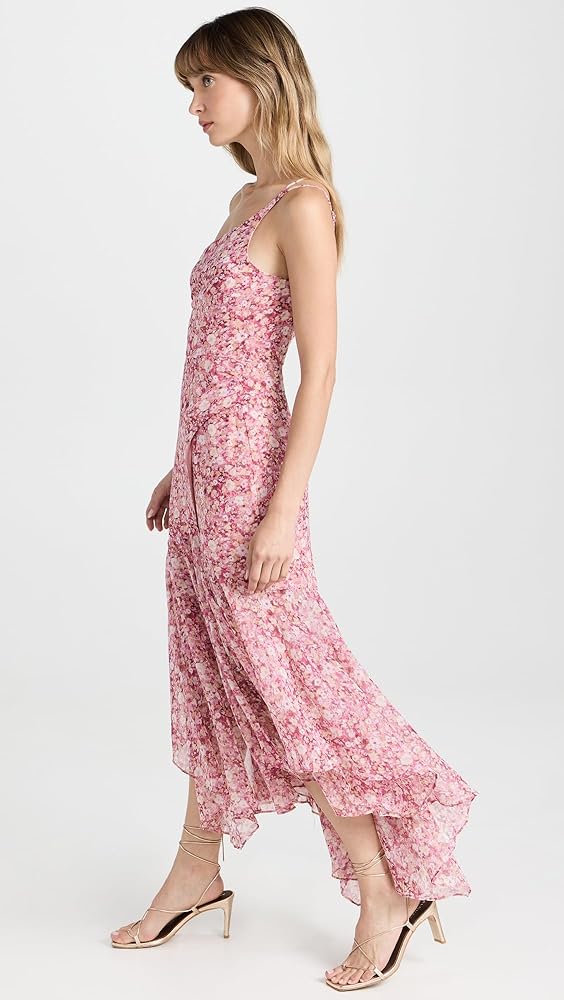- أشرطة رفيعة قابلة للتعديل، خط رقبة بكتف واحد، كشكش عند الصدرية، حاشية المنديل، طباعة زهور