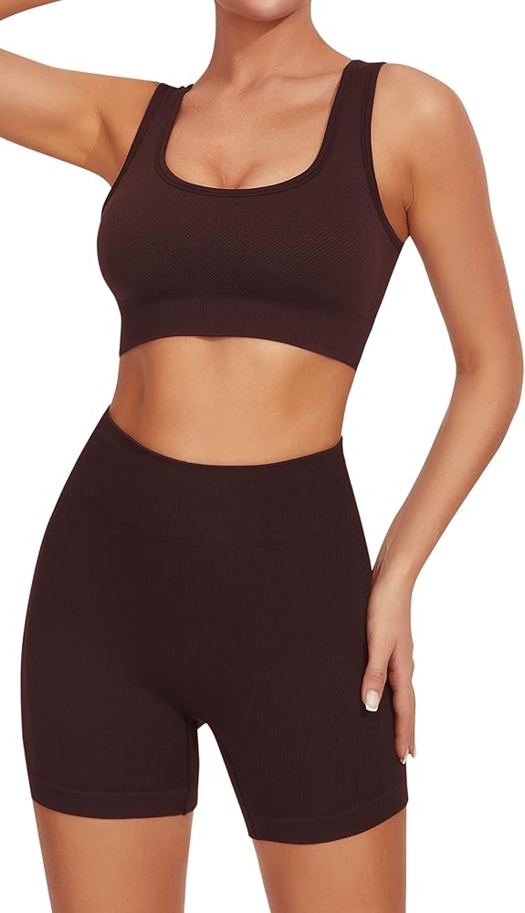 ►قميص بدون أكمام قصير: مع أحزمة واسعة وأكواب مبطنة قابلة للإزالة، يمكن لتصميم مجموعات اليوغا المضلع غير القابل للانزلاق أن يبقي كل شيء في مكانه