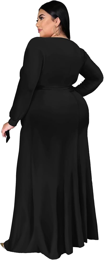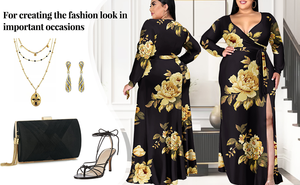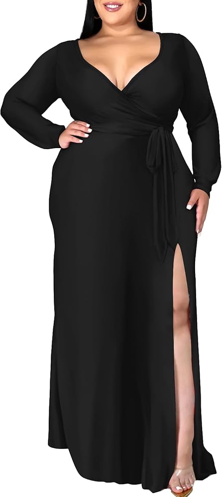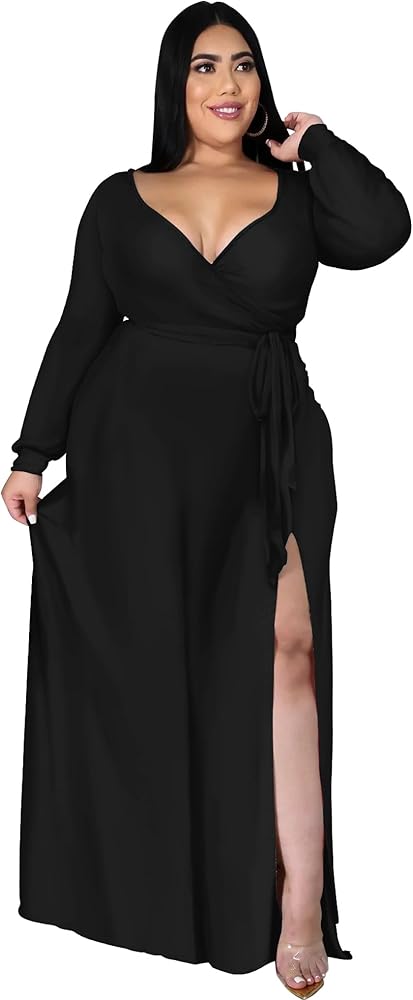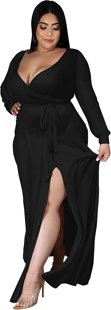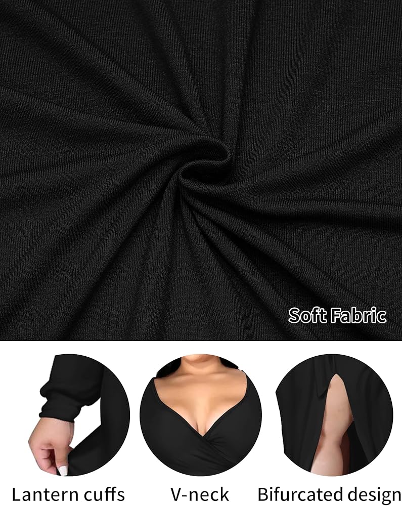 • 【تصميم عصري】تصميم بمقاس كبير، فستان أنيق بأكمام طويلة ورقبة على شكل حرف V، وحزام مطابق؛ إبراز محيط الخصر وإخفاء الانتفاخ بشكل جيد والبطن المكشكش. ويضيف تصميم الشق الجانبي الإثارة دون المساس بالتواضع.