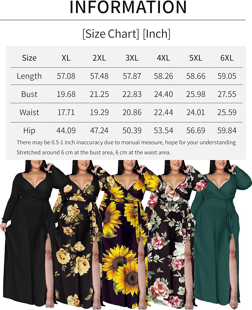 فستان FANDEE نسائي كاجوال مقاس كبير مزين بالزهور وأكمام طويلة ورقبة على شكل V مع جيوب 2023 فساتين حفلات الزفاف ومهرجانات يومية أسود 4XL