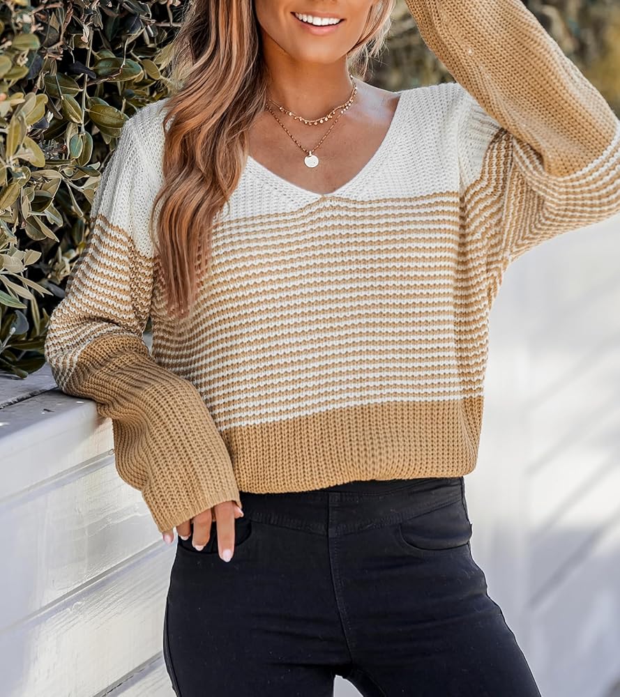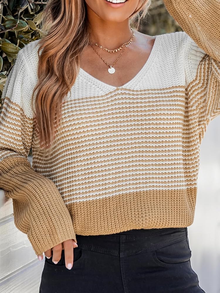 [تصميم فريد]: السترة المحبوكة ذات الرقبة على شكل حرف V مع تفاصيل مخططة بألوان متعددة يمكن أن تمنحك شعورًا مريحًا عند الارتداء وتجعلك تبدو أكثر أناقة في الشتاء. يمكن أن تجعلك السترة ذات الأكمام الطويلة ذات اللون البني تبدو أكثر جاذبية ودفئًا.