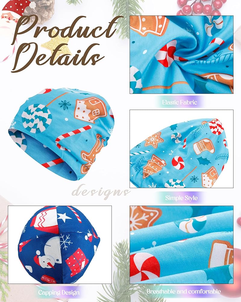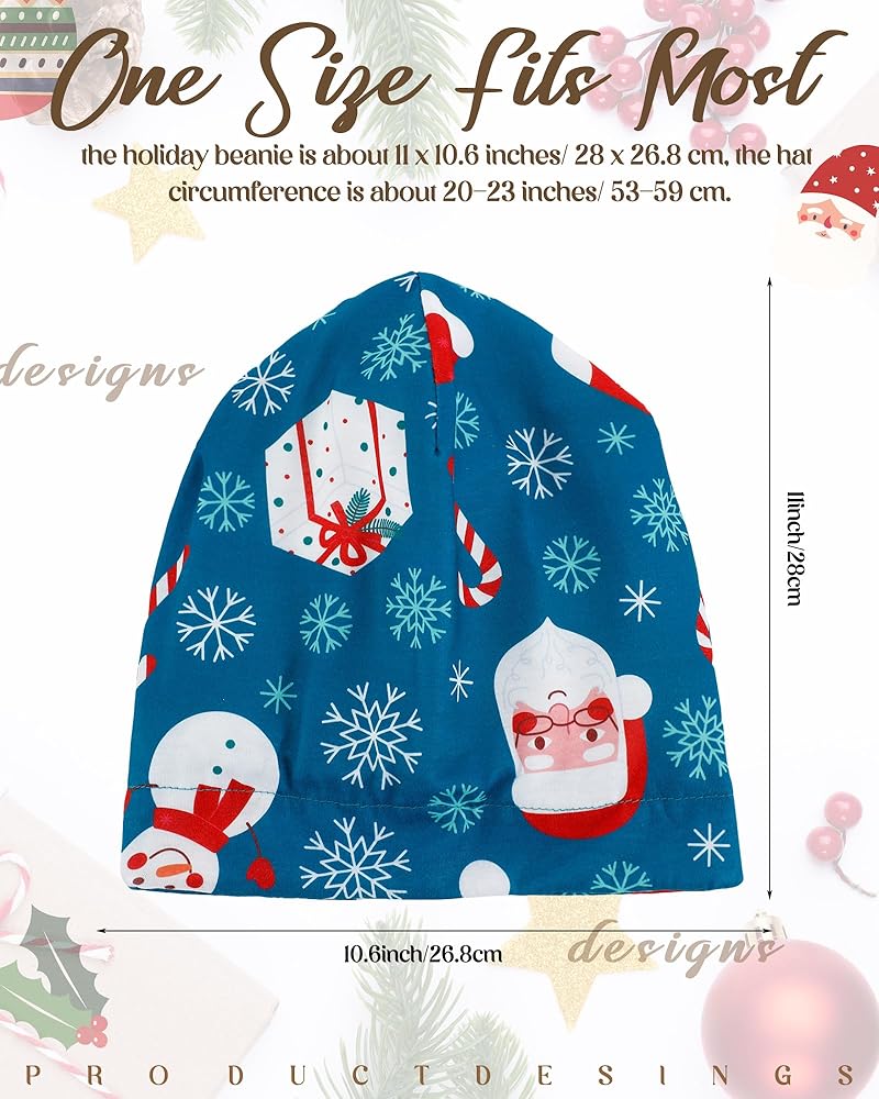 مؤشر الحجم: قبعة العطلات حوالي 11.02 × 10.55 بوصة / 28 × 26.8 سم، محيط القبعة حوالي 20-23 بوصة / 53-59 سم، مرنة وقابلة للتمدد، مناسبة للأشخاص ذوي أنواع الرأس المختلفة للارتداء